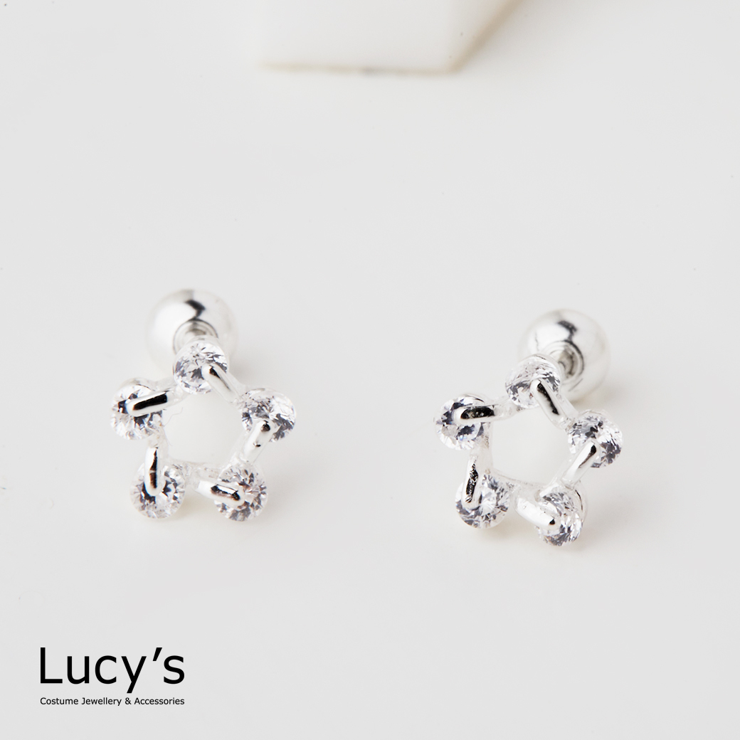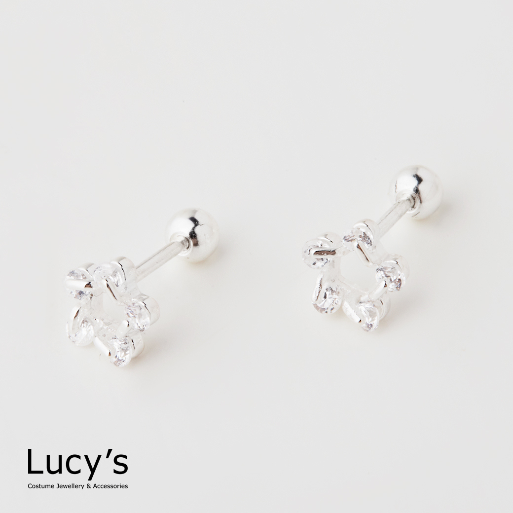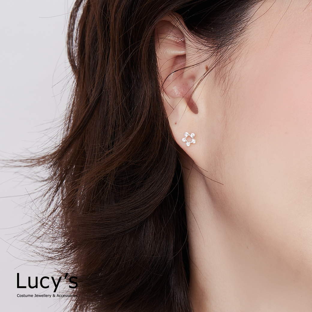 925純銀 鑽點小花 轉珠耳環 (114007)