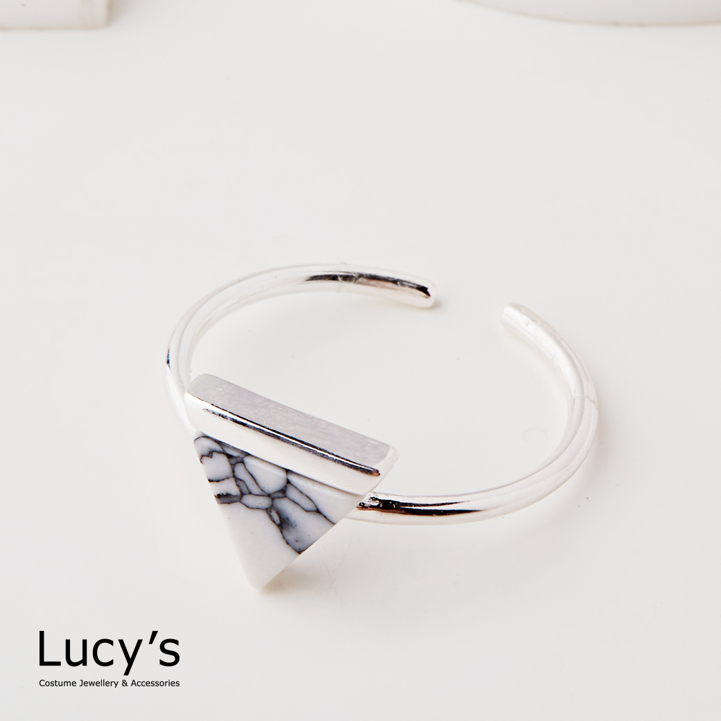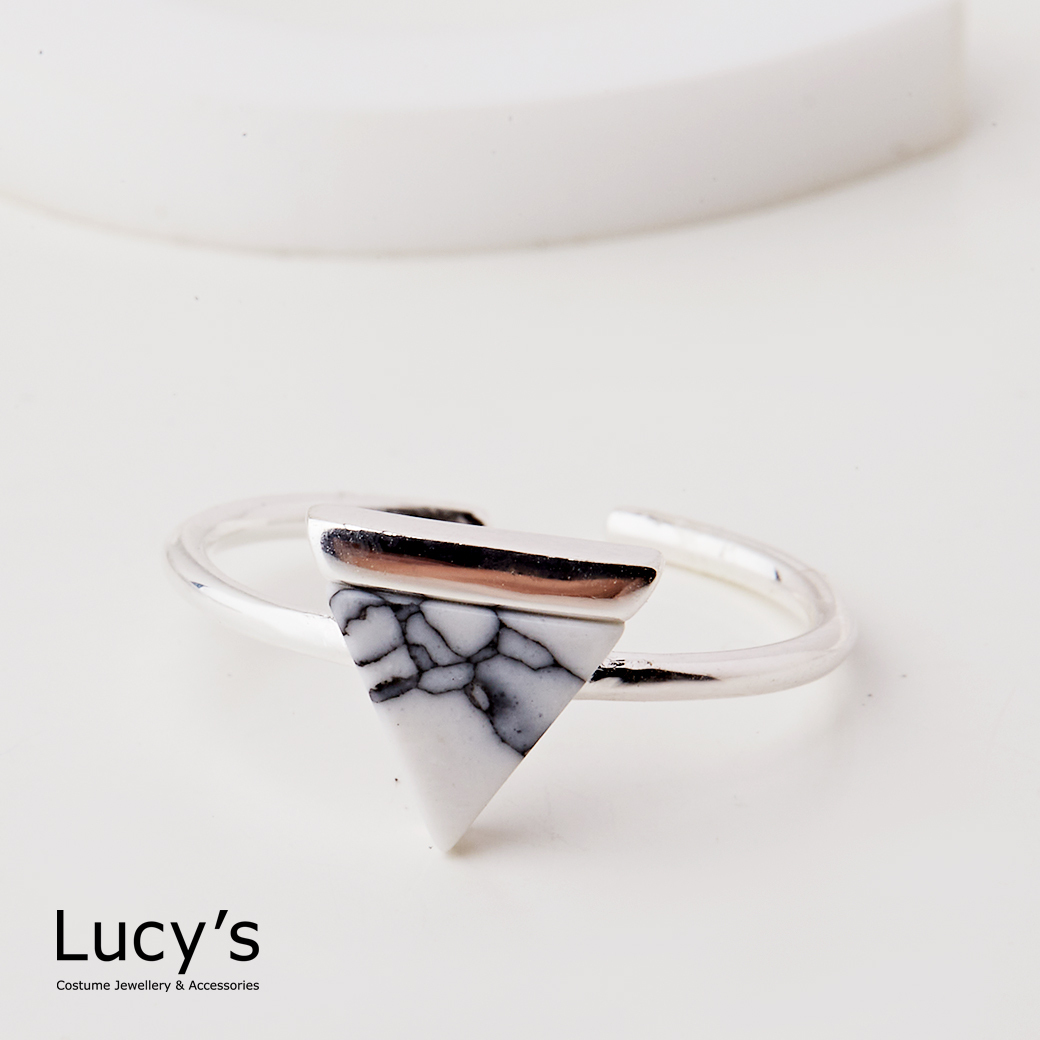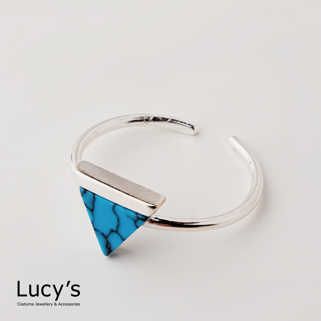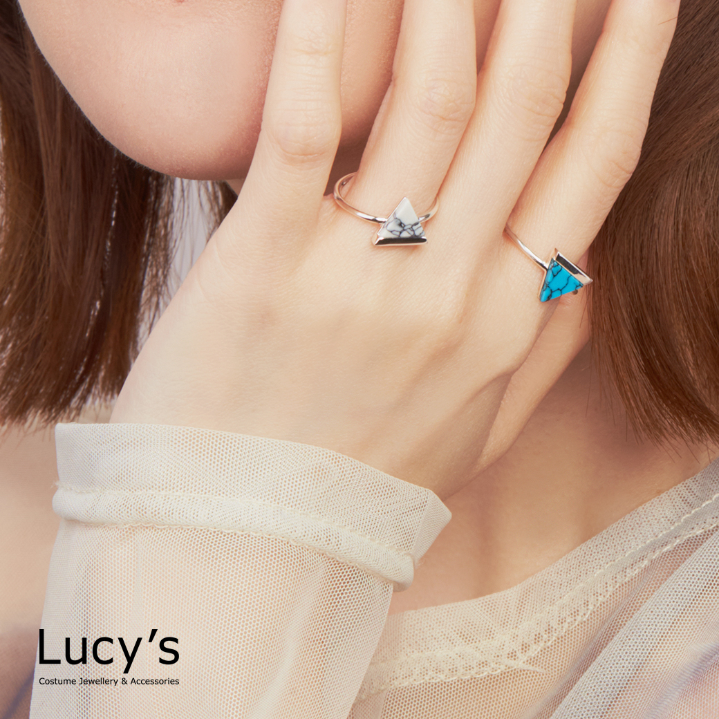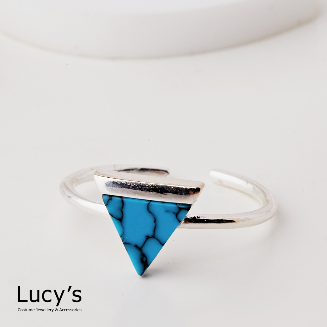 925純銀 三角松石 開口戒 (二色) (115350/115351)