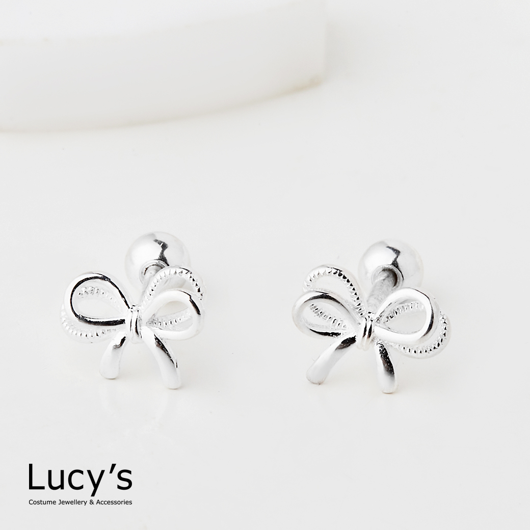 925純銀 蝴蝶結 轉珠耳環 (117784)