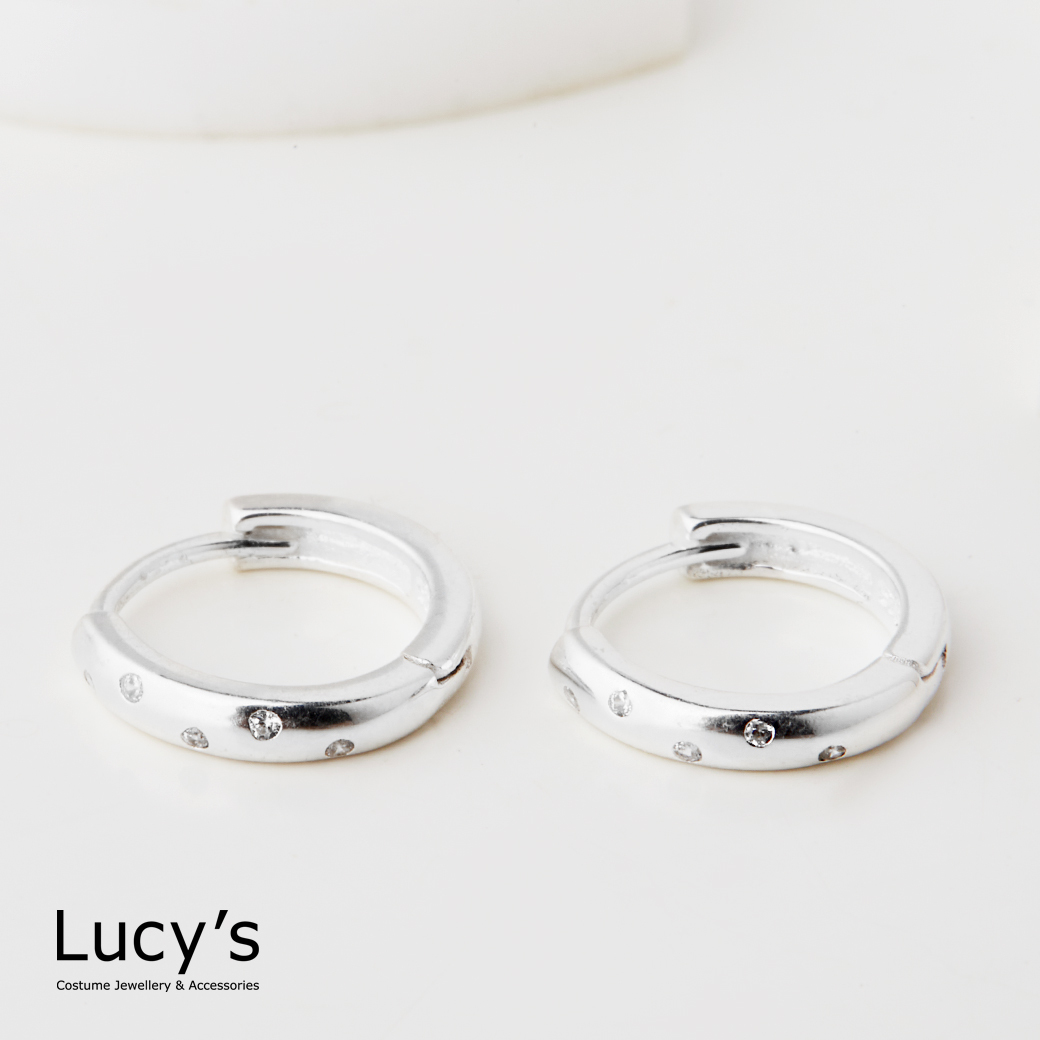 925純銀 點點鑽 易扣耳環 (119664)