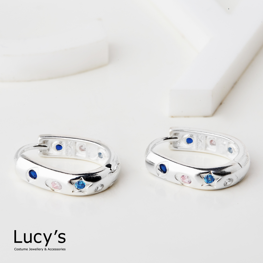 925純銀 繽紛幾何 易扣耳環 (122992)