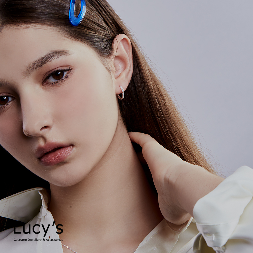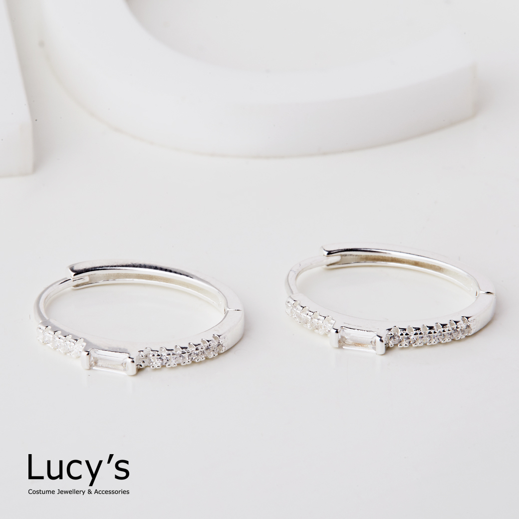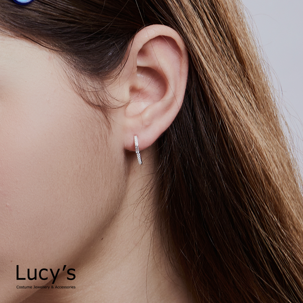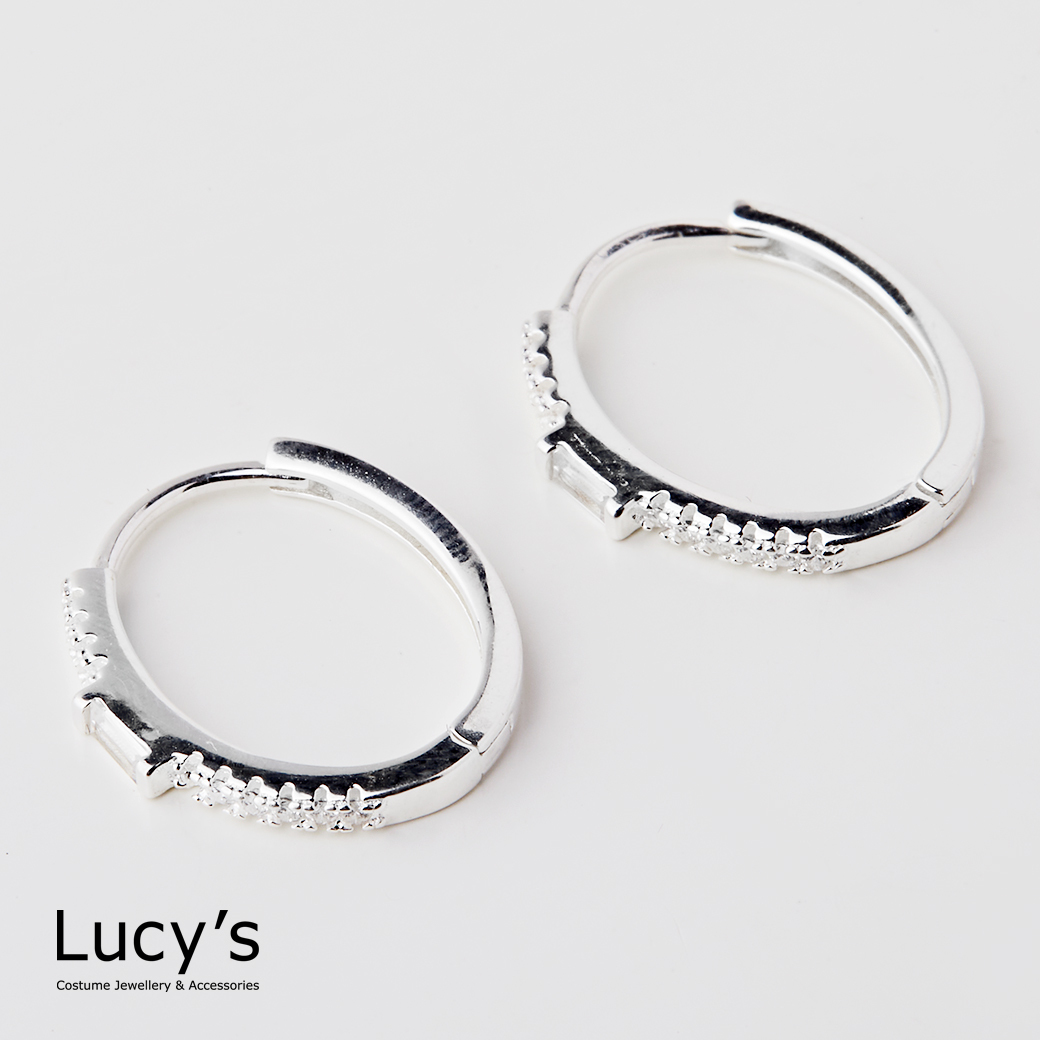 925純銀 單線晶鑽 易扣耳環 (123219)