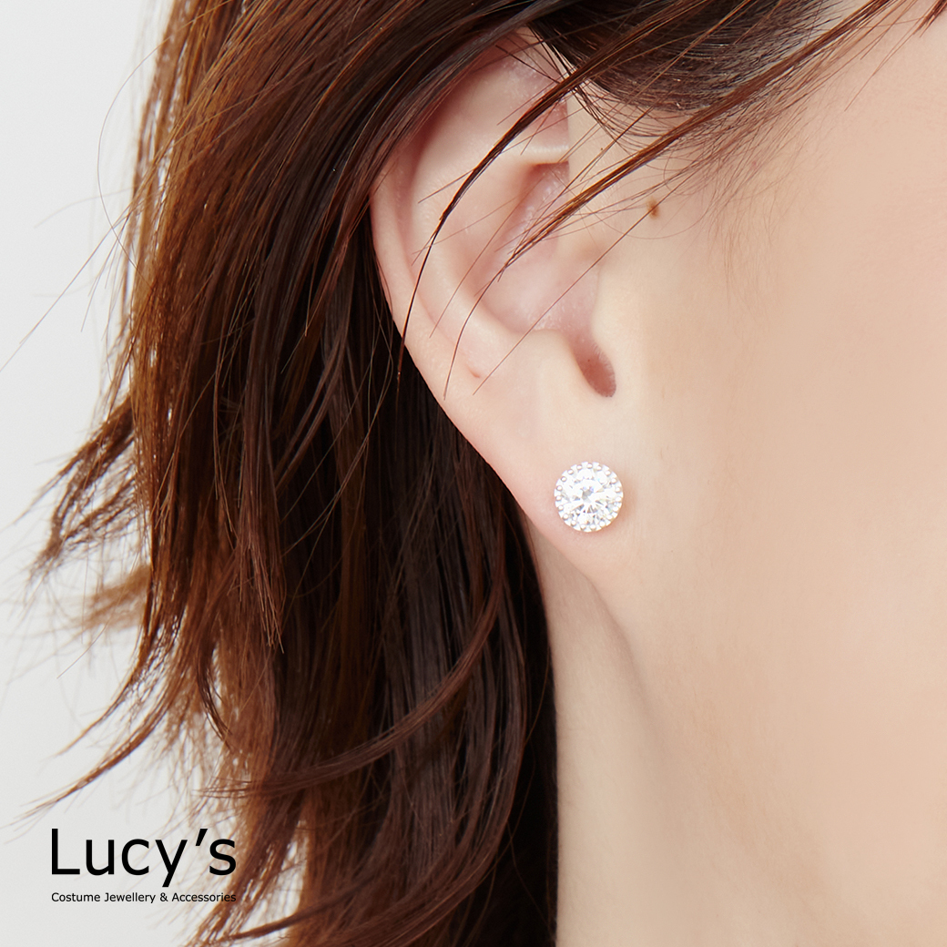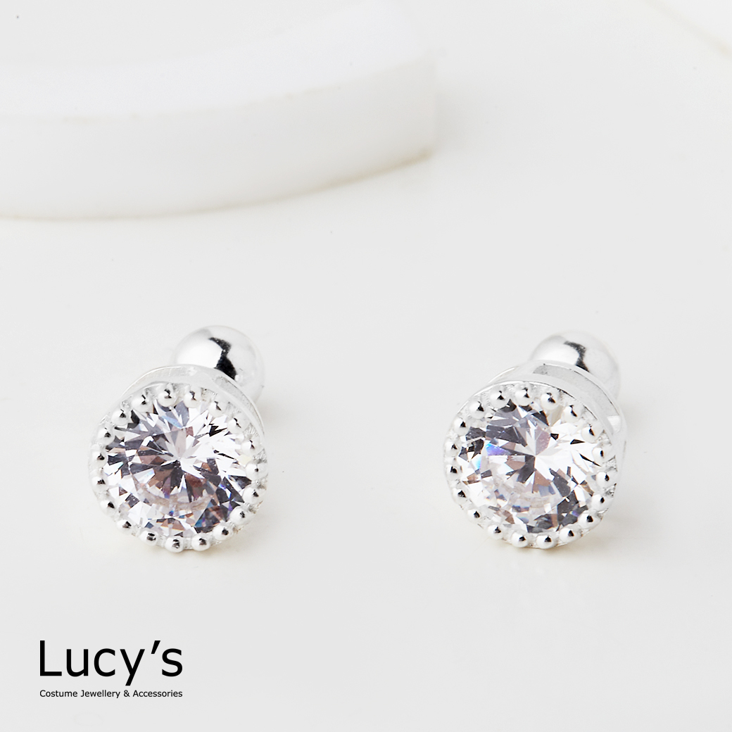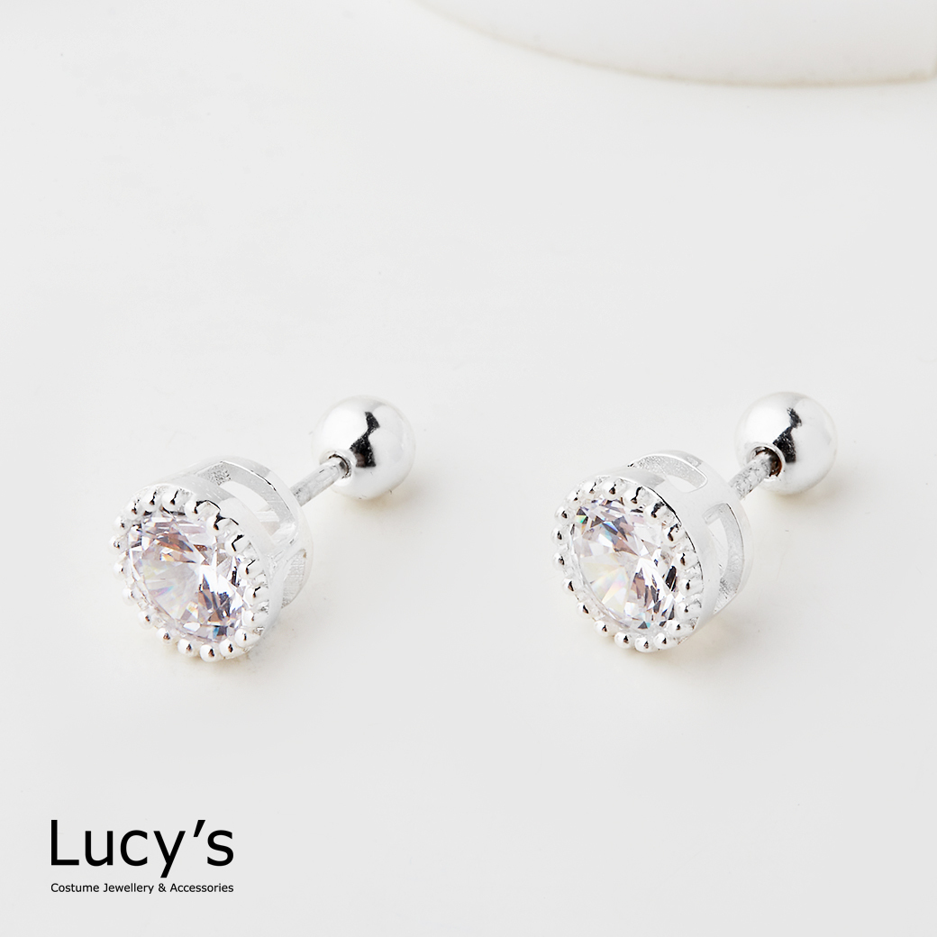 925純銀 璀璨單鑽 轉珠耳環 (123243)