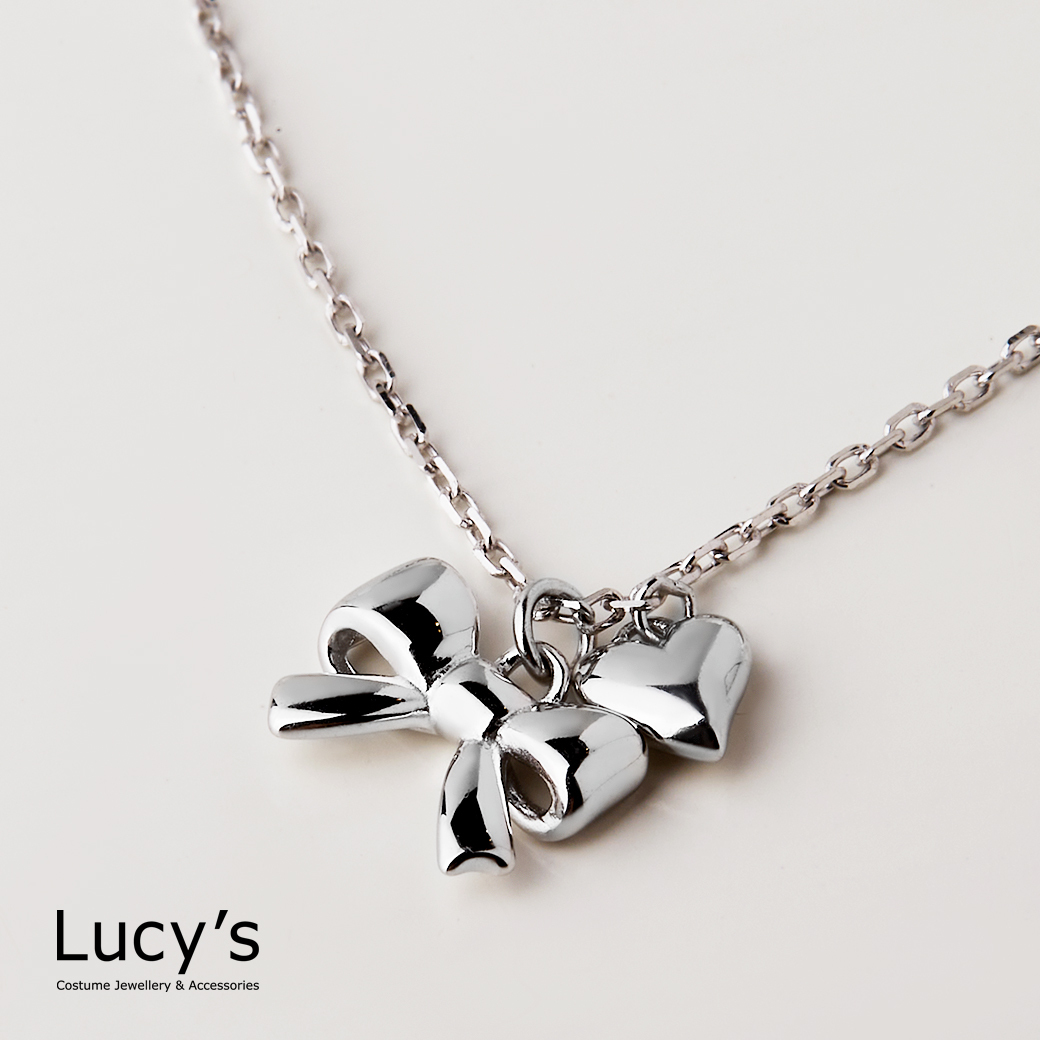 925純銀 心戀蝴蝶結 項鍊 (124395)