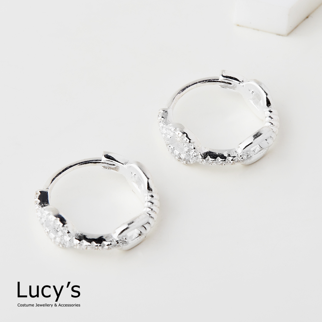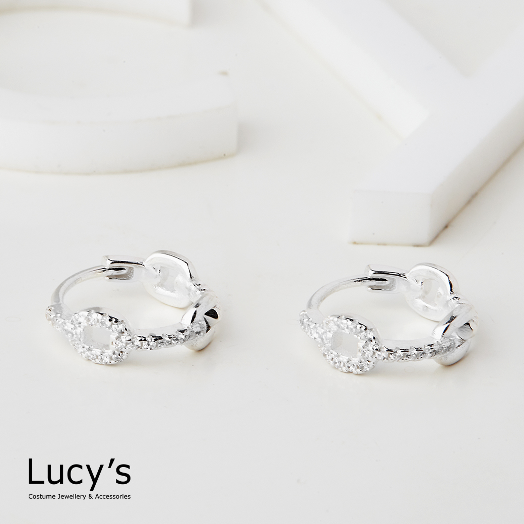 925純銀 鑲鑽鍊圈 易扣耳環 (125312)