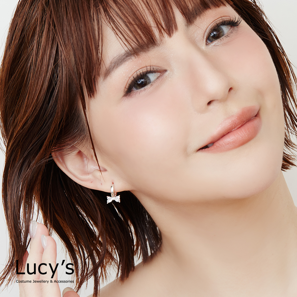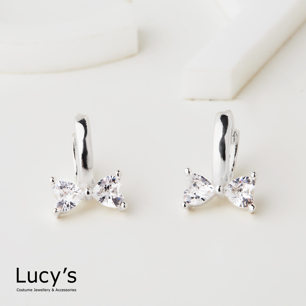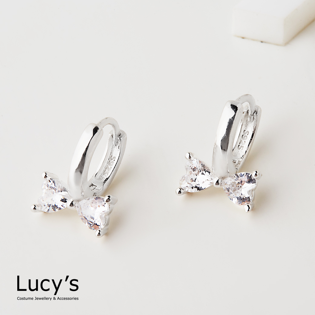 925純銀 蝴蝶結鋯石 易扣耳環 (125313)