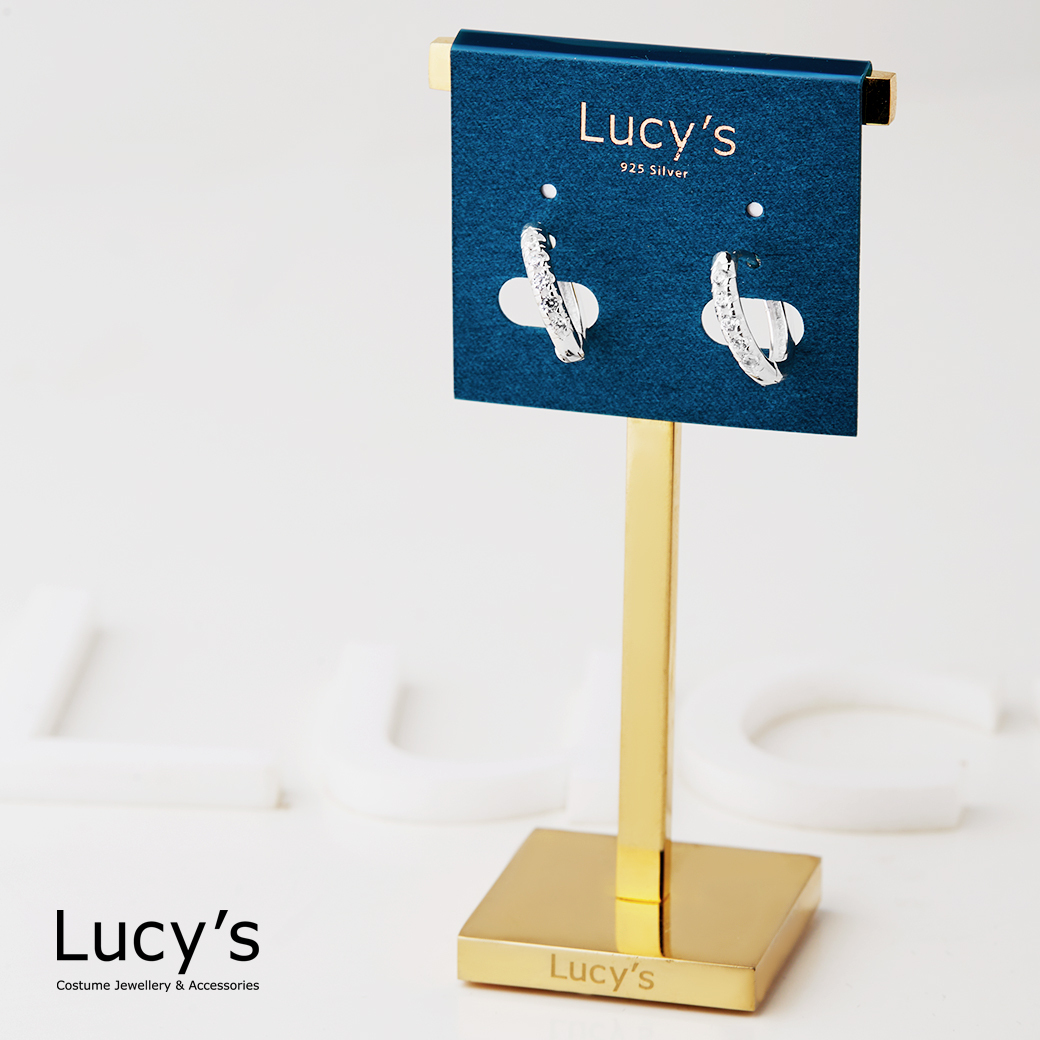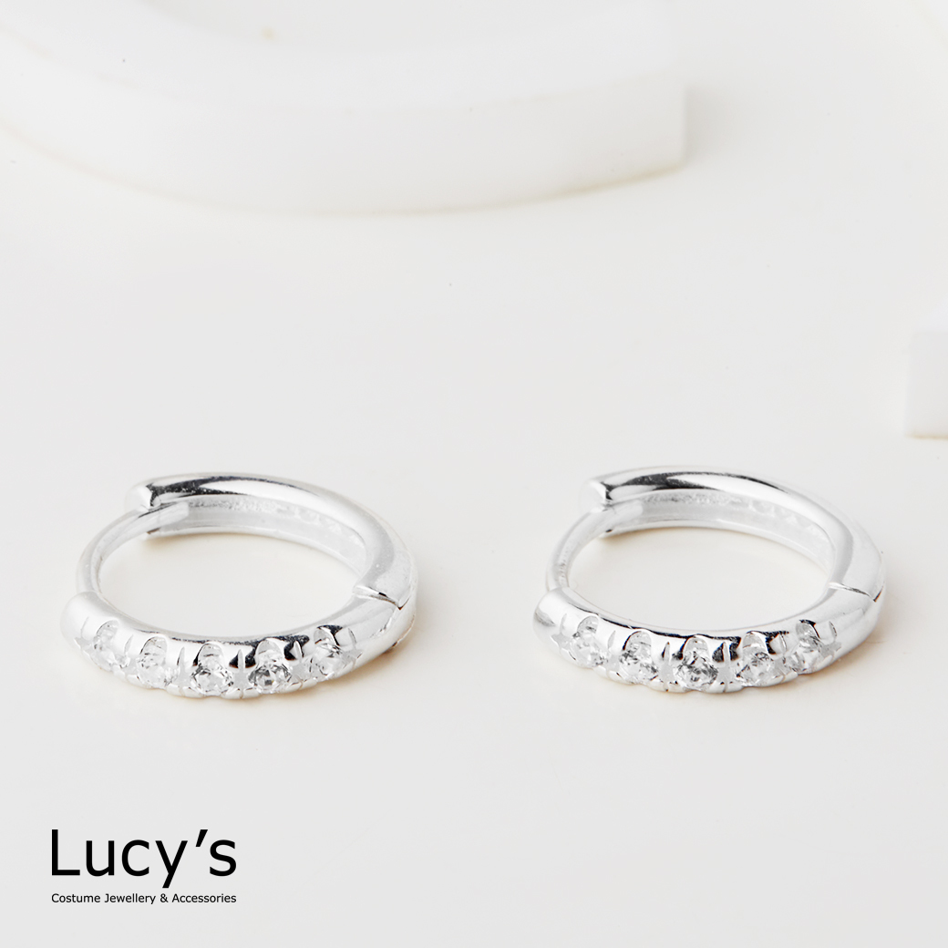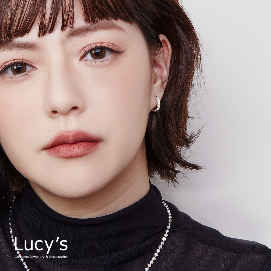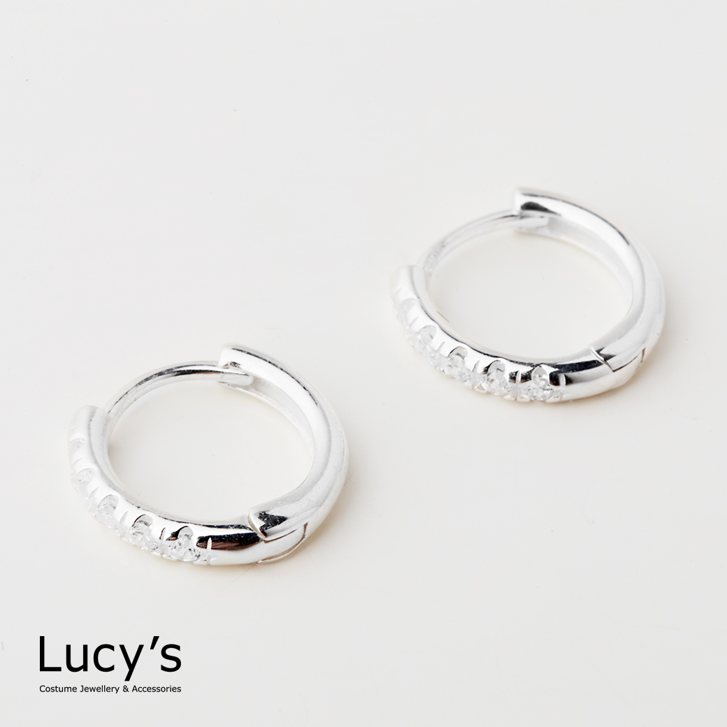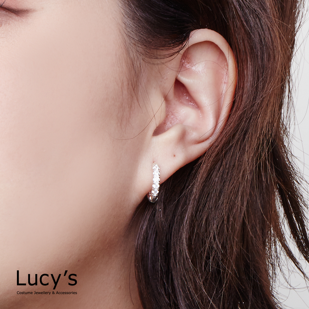 925純銀 簡約鑲鑽 易扣耳環 (125629)