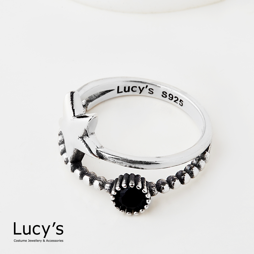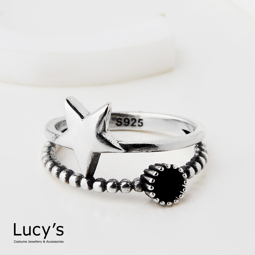 925純銀 夜星黑鑽 硫化戒指 (125717)