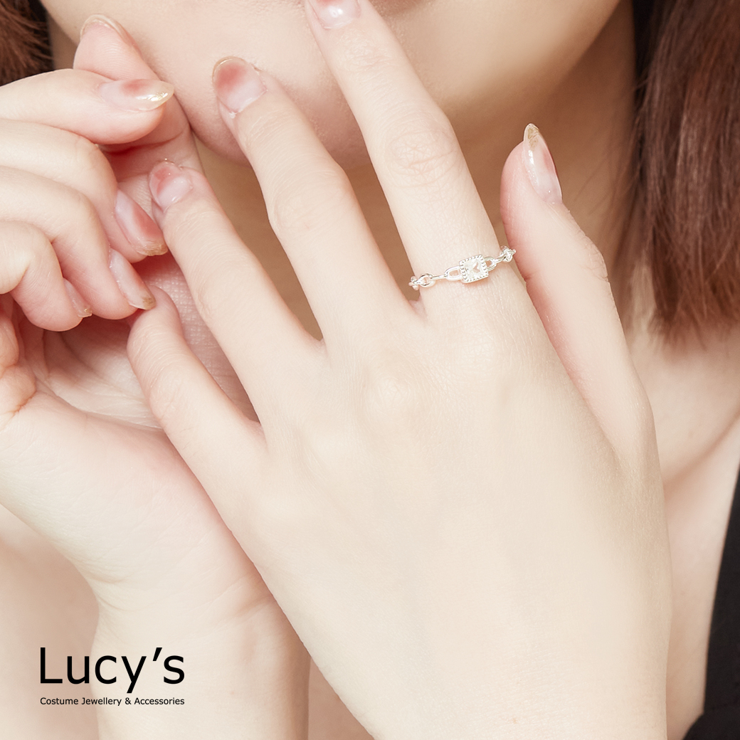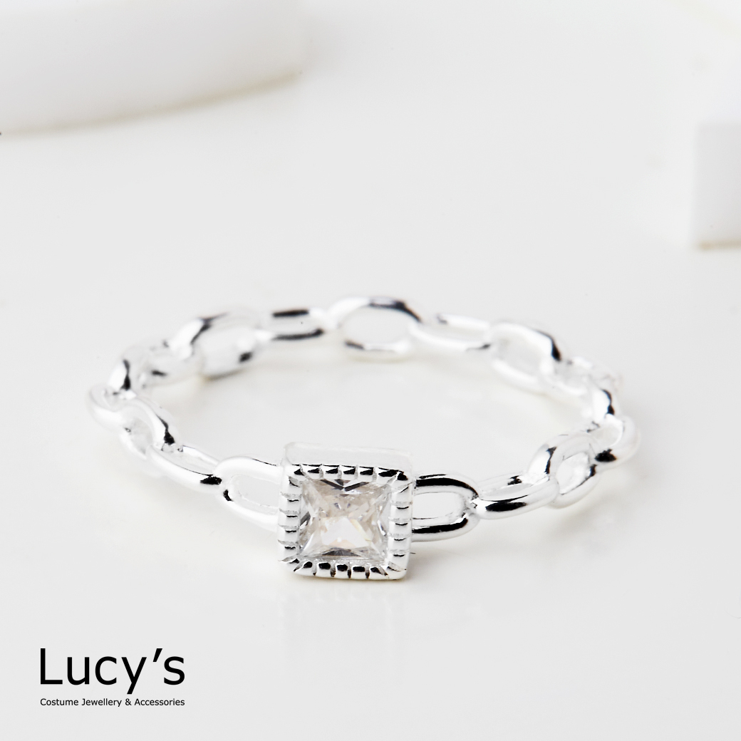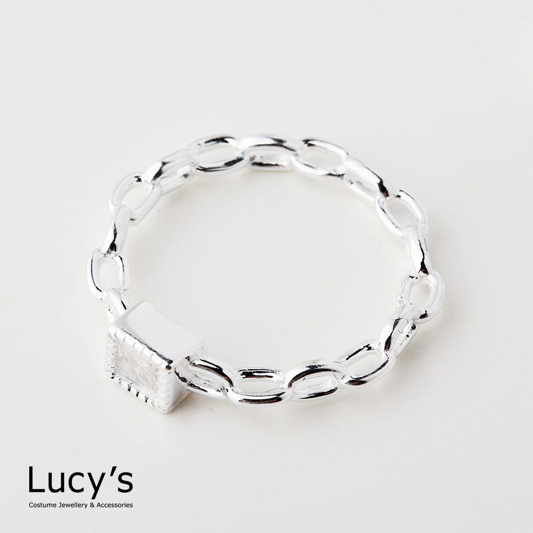 925純銀 方鑽鍊條 尾戒 (125746/125747/125748)