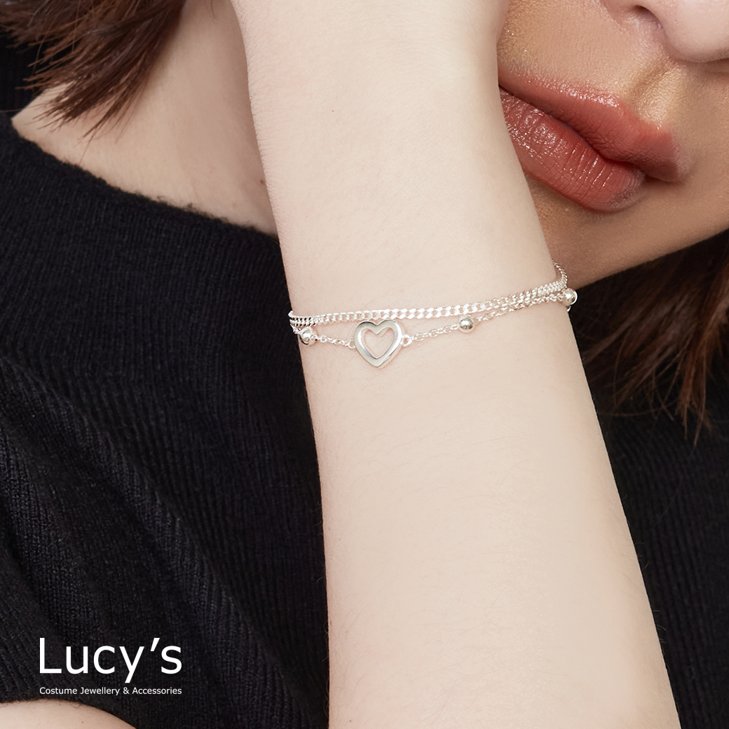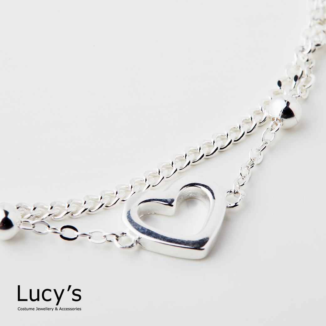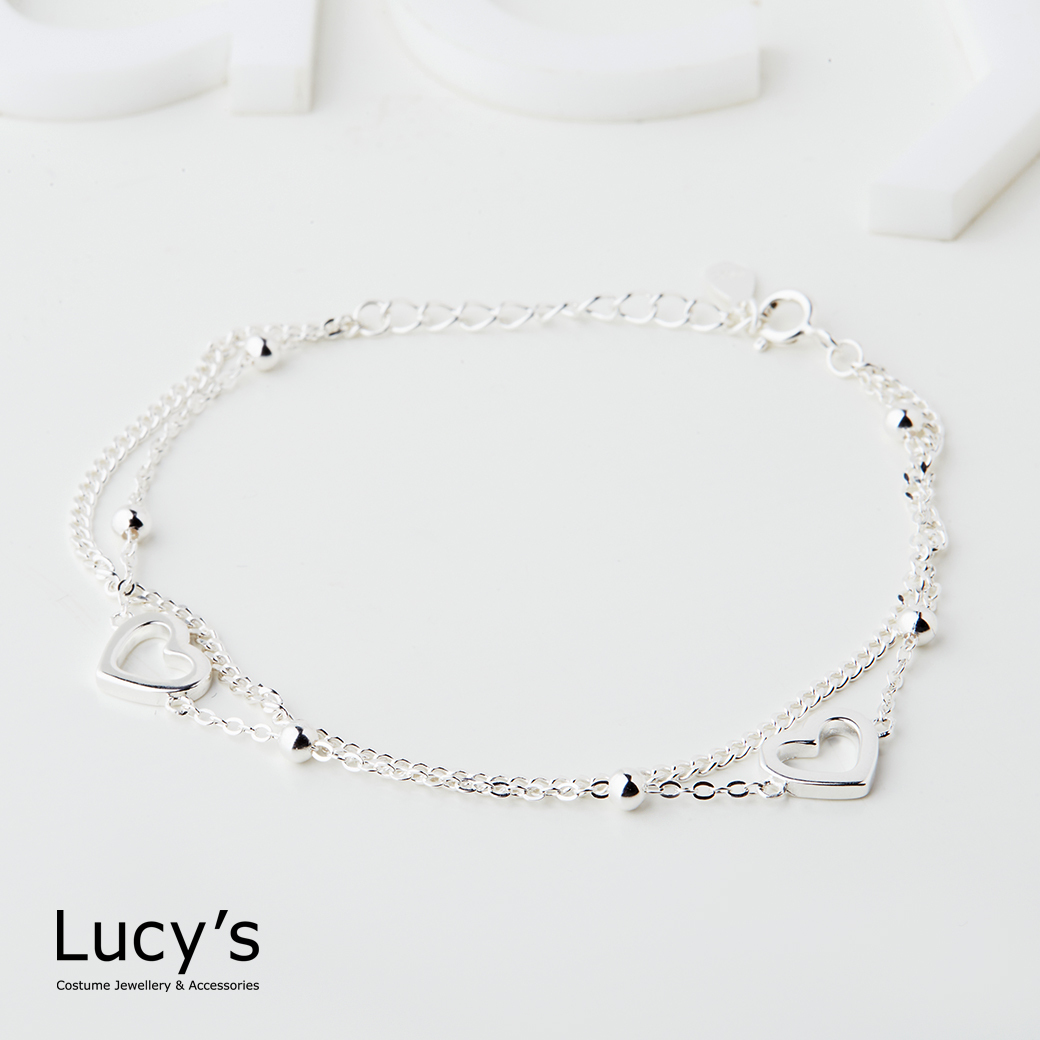 925純銀 鏤空愛心 雙層手鍊 (126021)