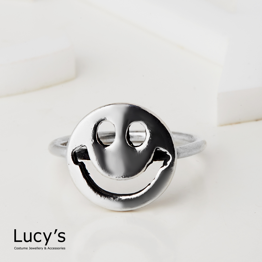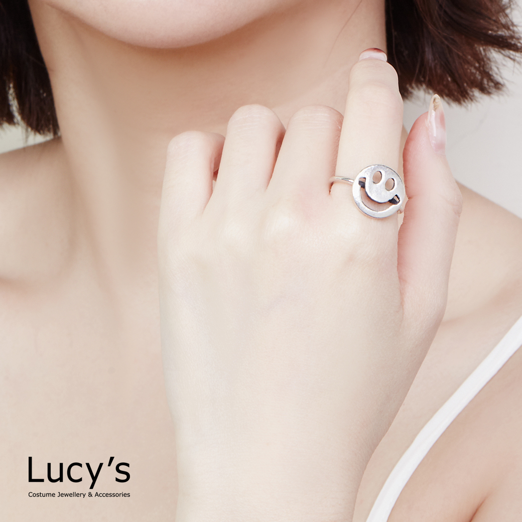 925純銀 大方笑臉 硫化戒指 (126238)