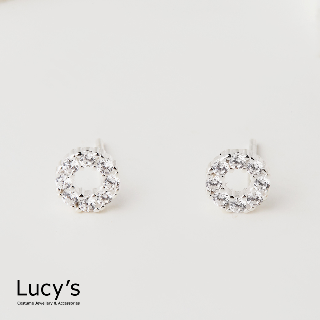 925純銀 滿鑽圓圈 耳環 (126486)