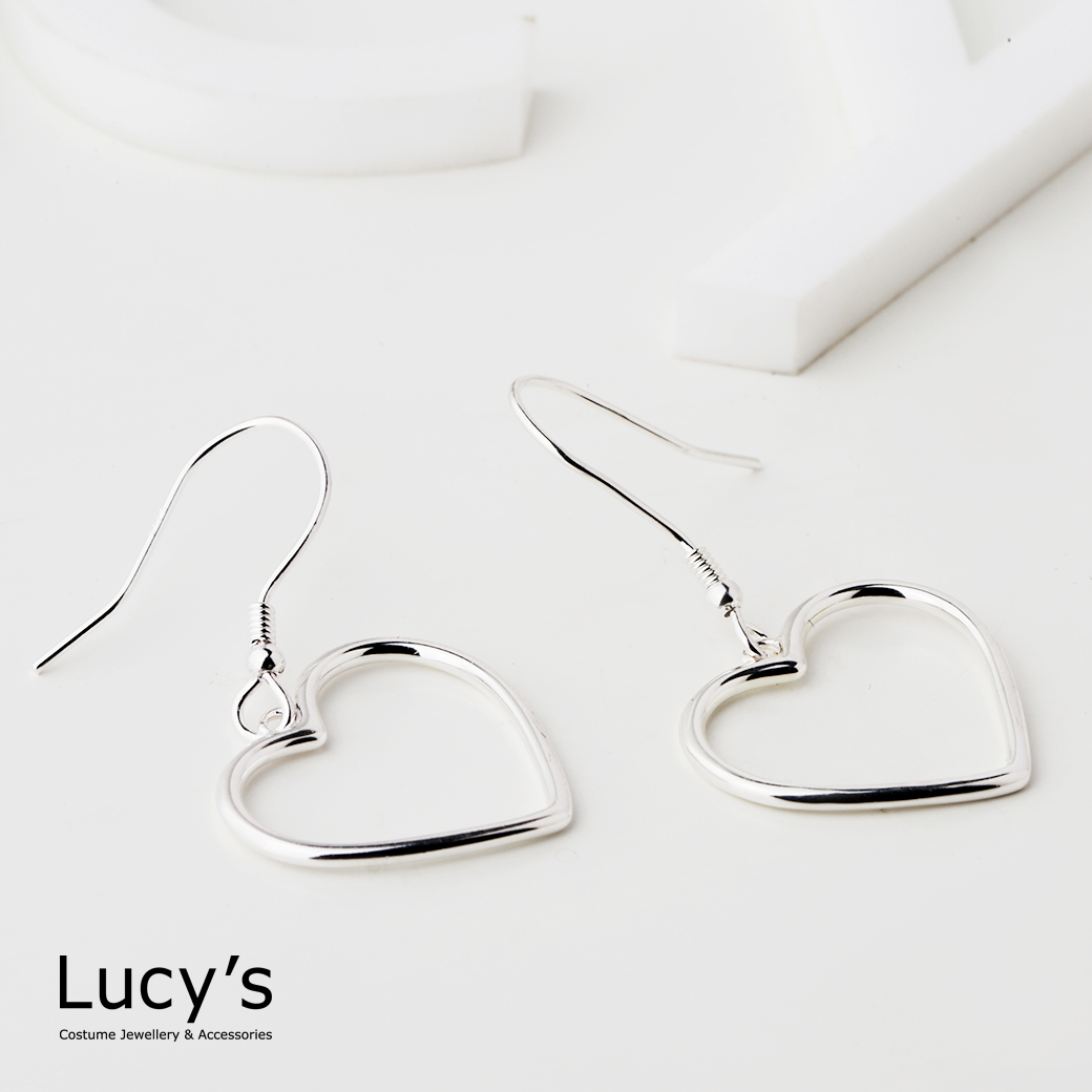 925純銀 鏤空心型 耳勾耳環 (126646)