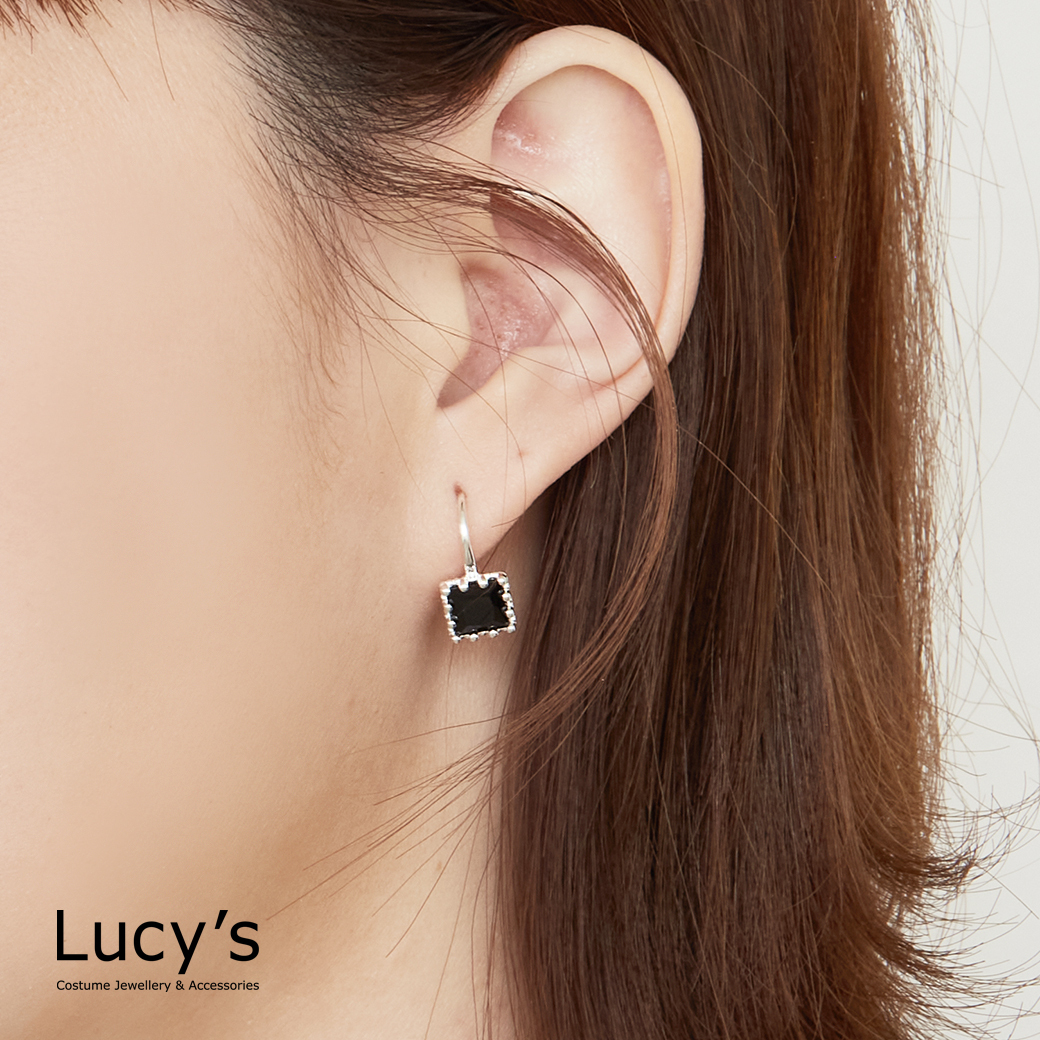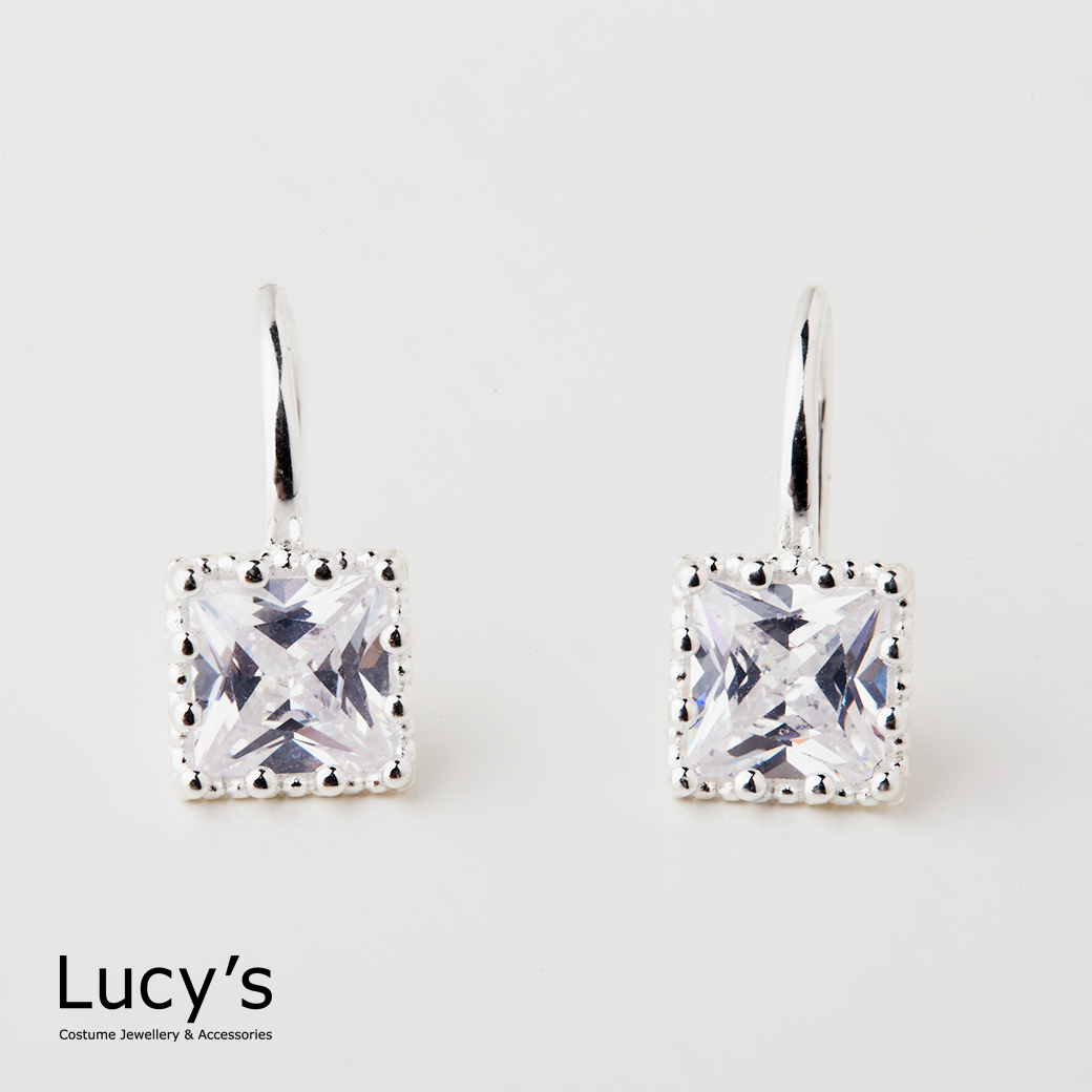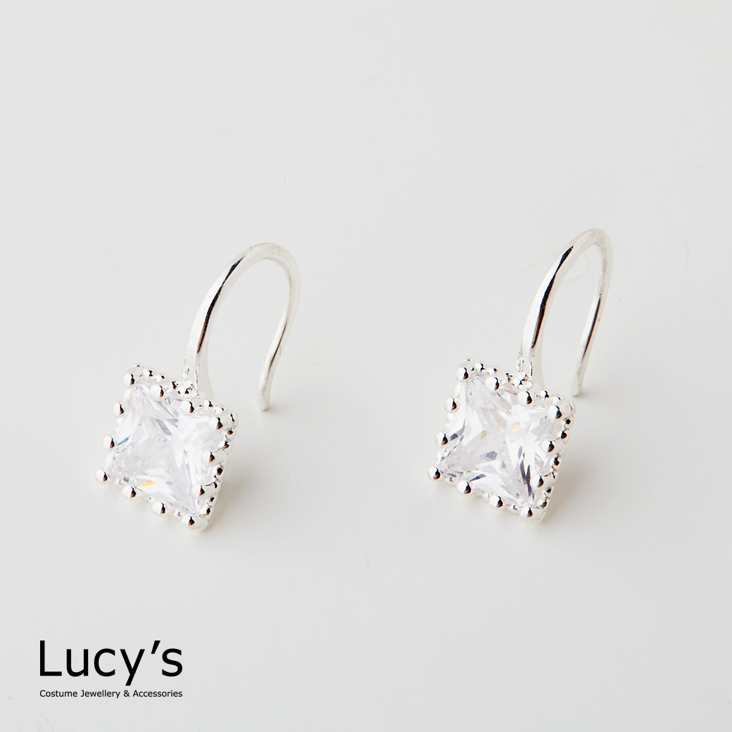 925純銀 鑲邊方鑽 耳勾耳環 (二色) (126650/126651)