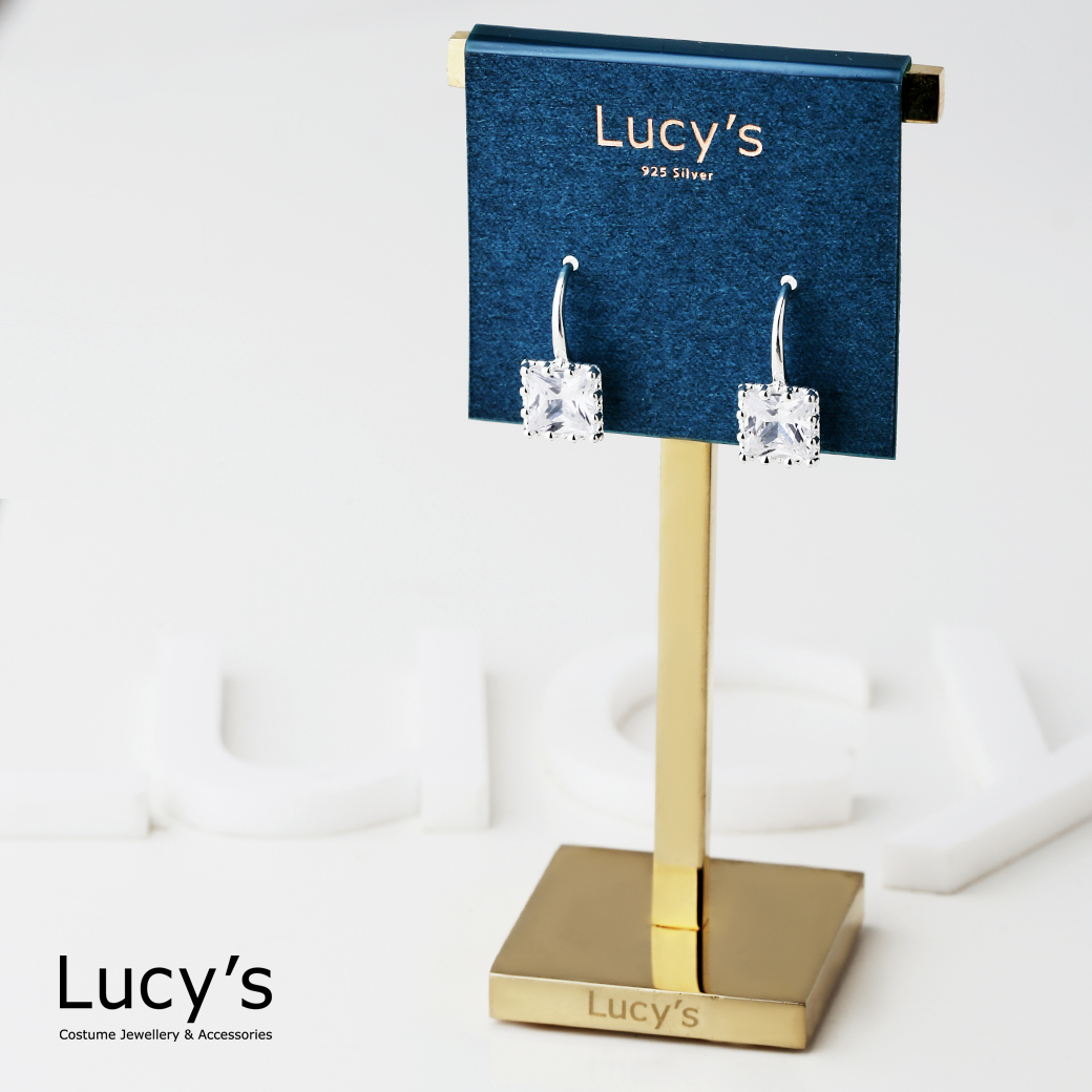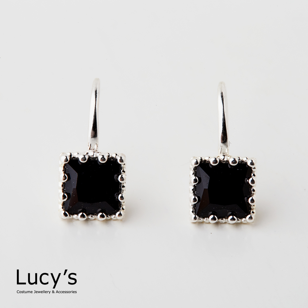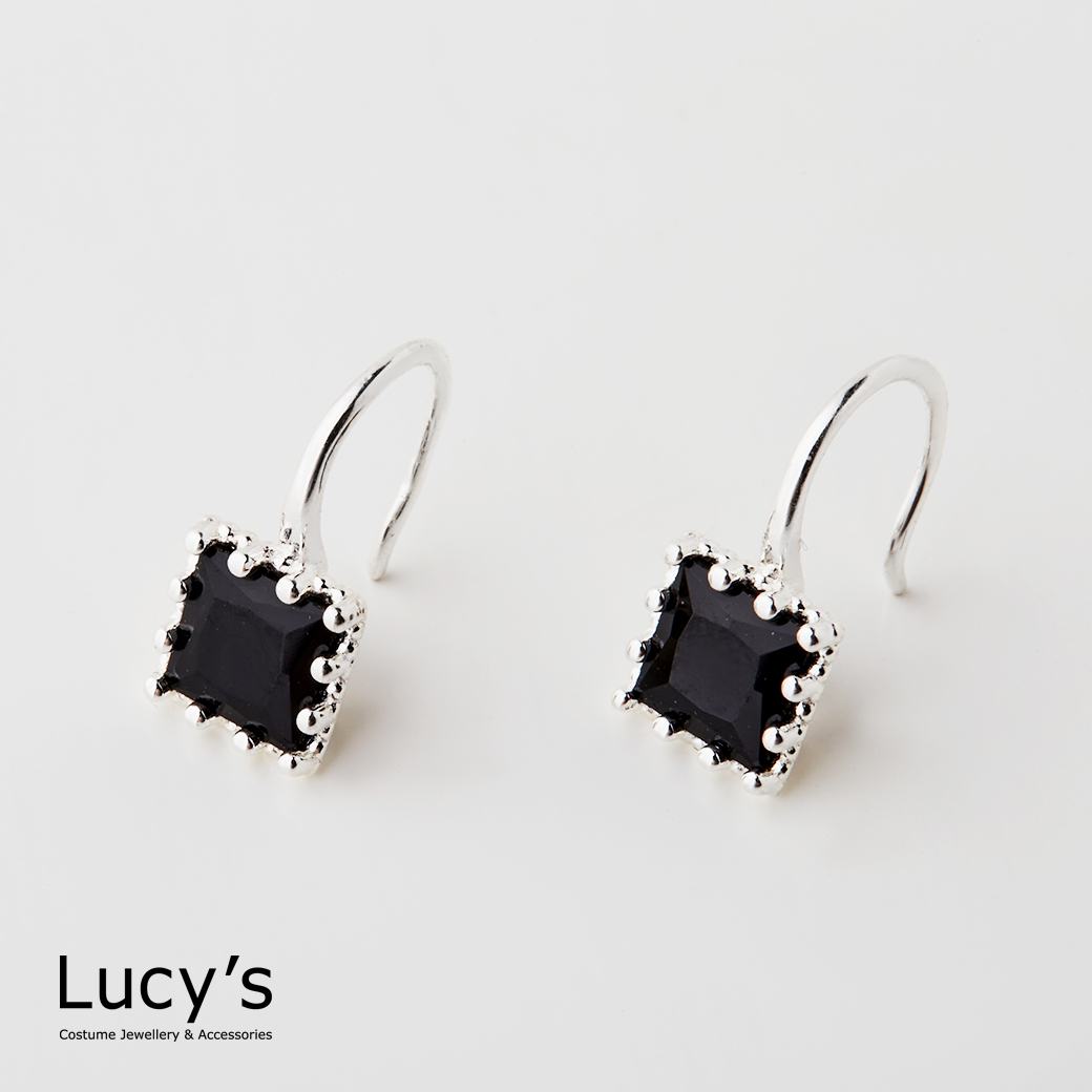 925純銀 鑲邊方鑽 耳勾耳環 (二色) (126650/126651)