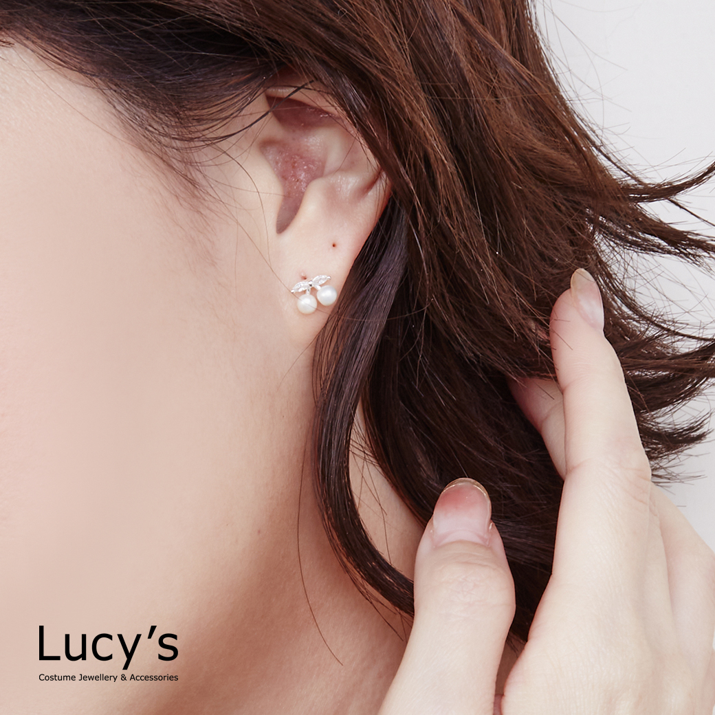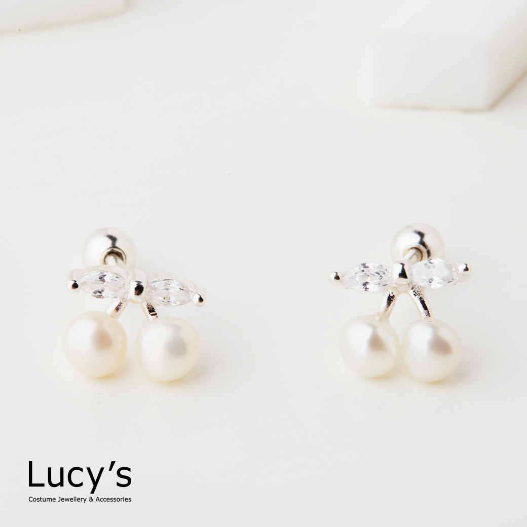 925純銀 珍鑽櫻桃 轉珠耳環 (126937)
