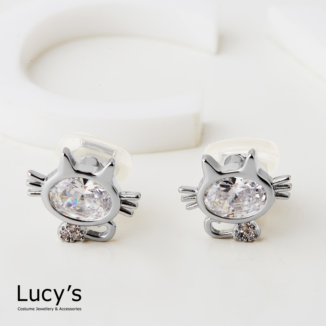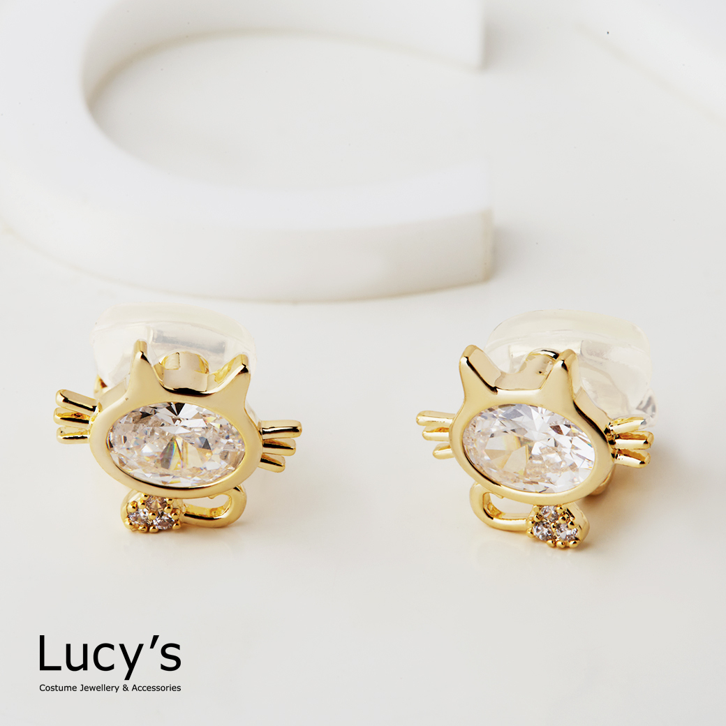 鋯耀小貓 夾式耳環 (二色) (127001/127002)