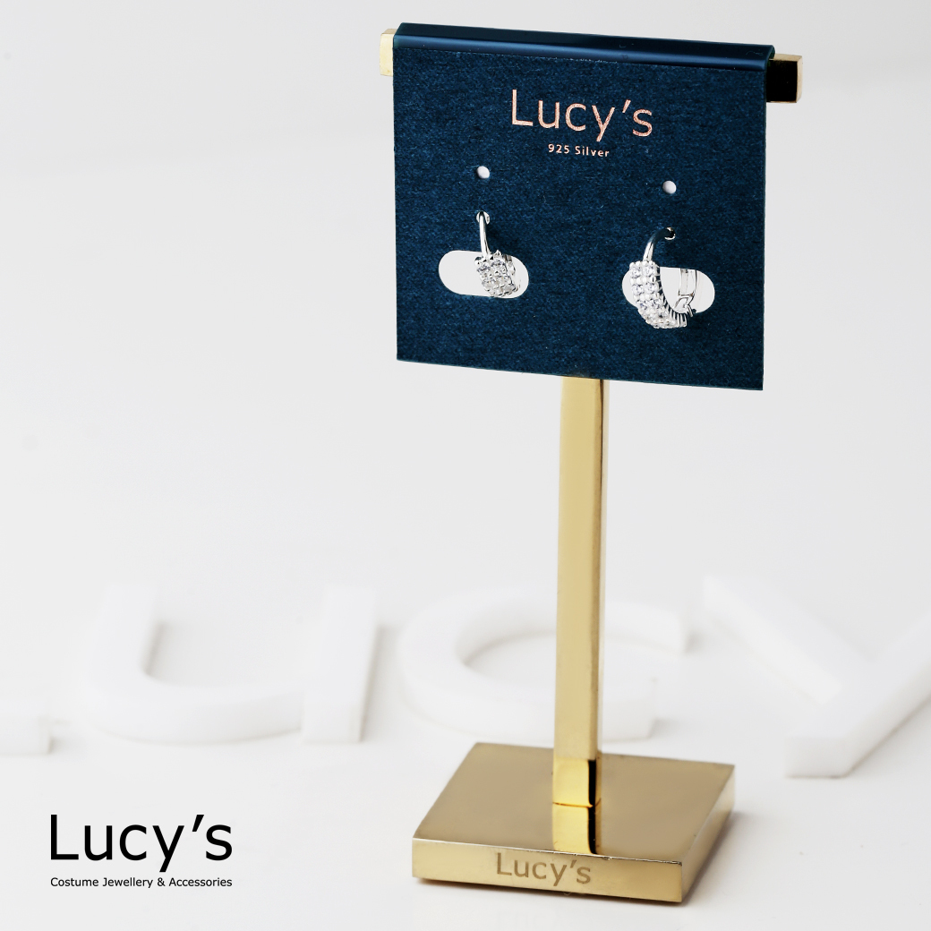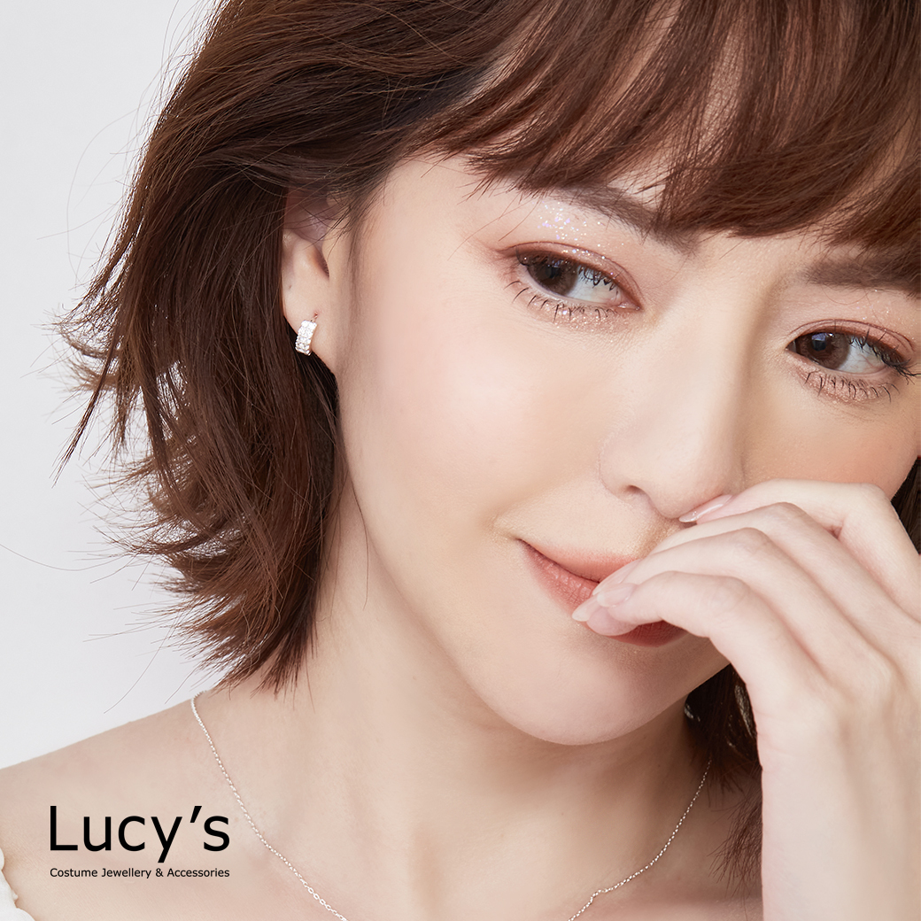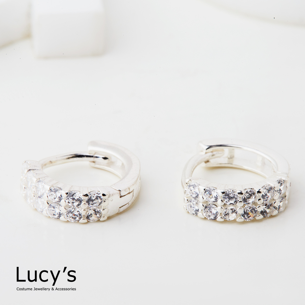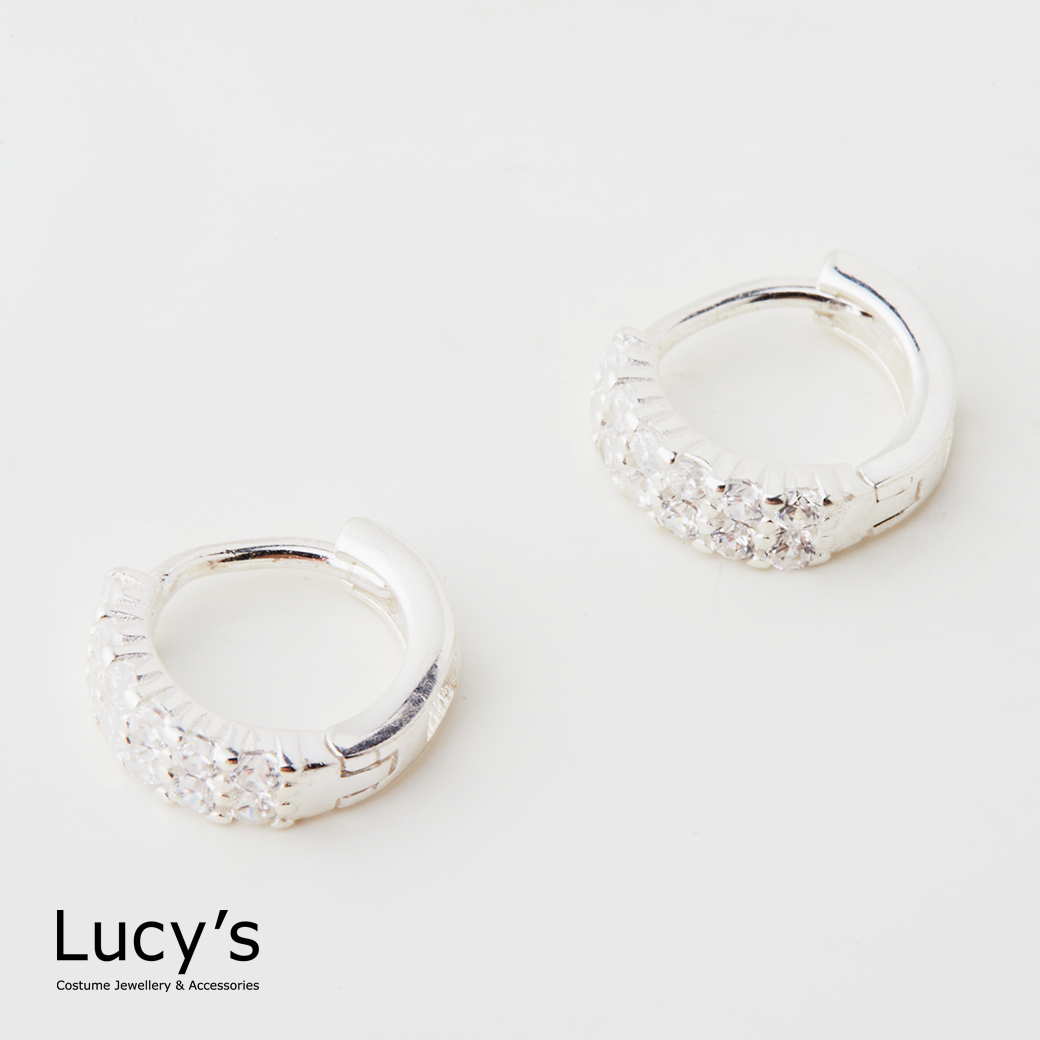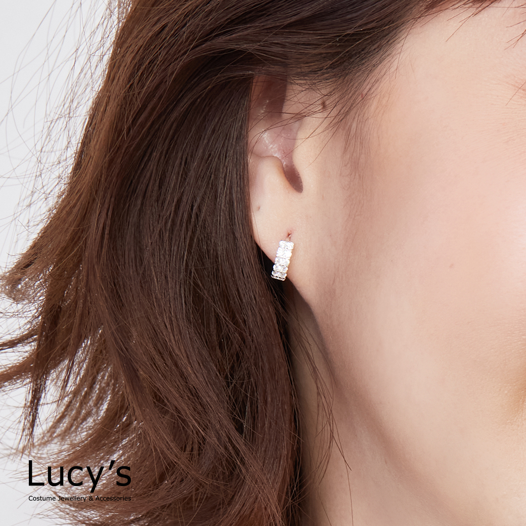 925純銀 輕奢半排鑽 易扣耳環 (127141)