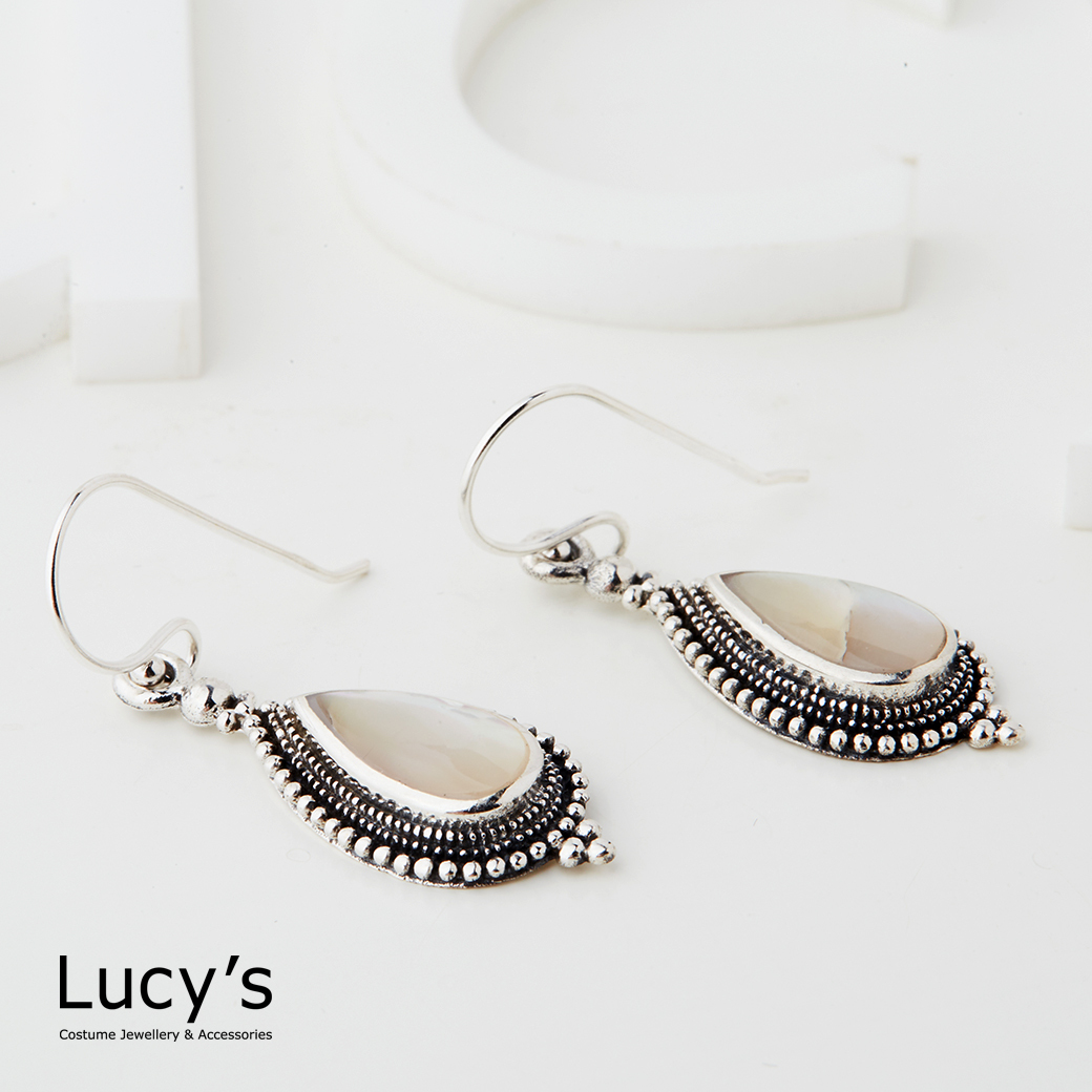 925純銀 復古垂滴 硫化耳勾耳環 (二色) (127312/127313)