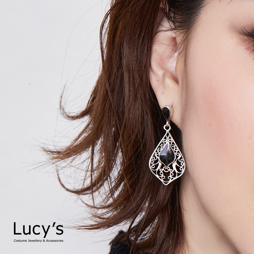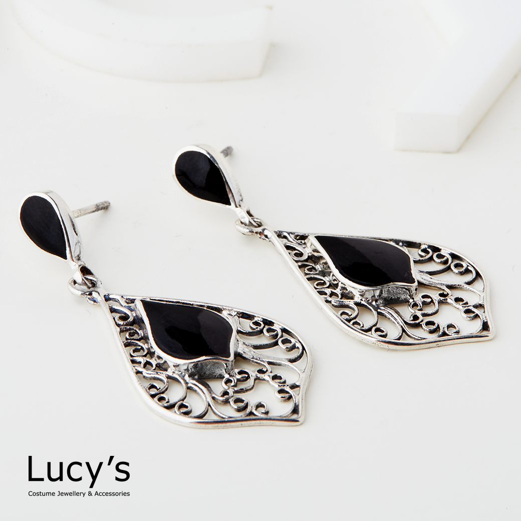 925純銀 月夜花影 硫化耳環 (二色) (127428/127429)