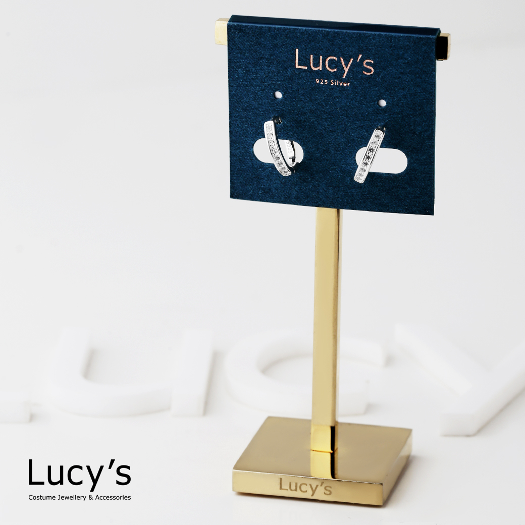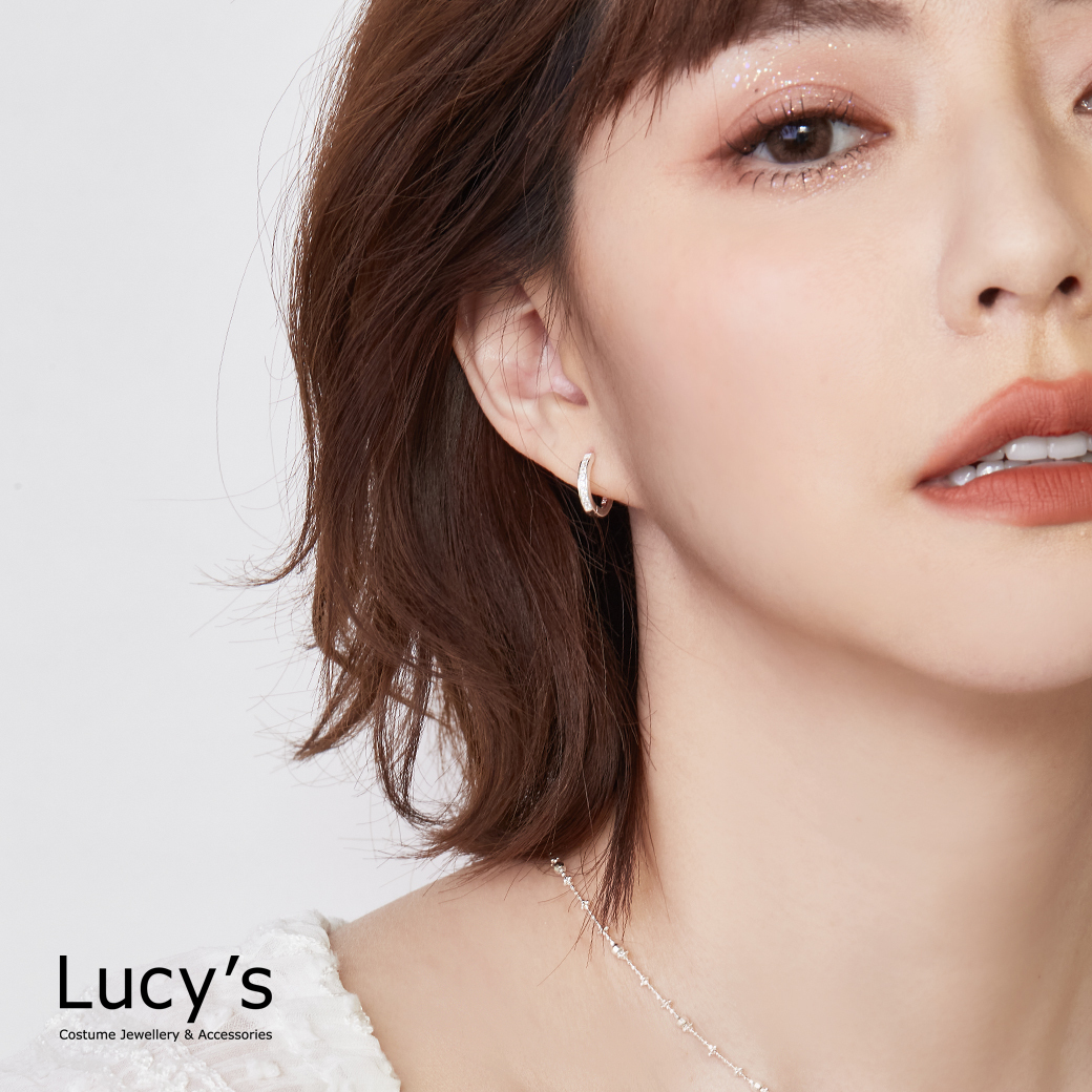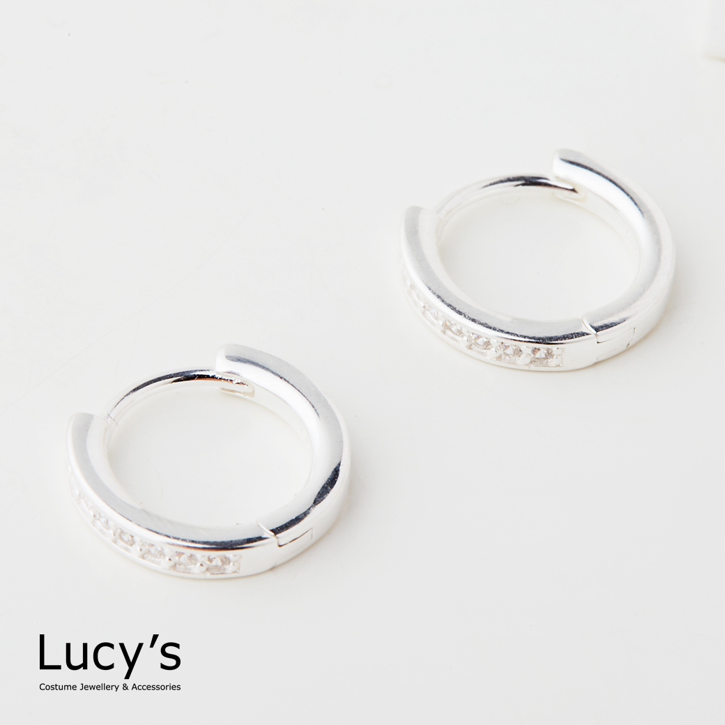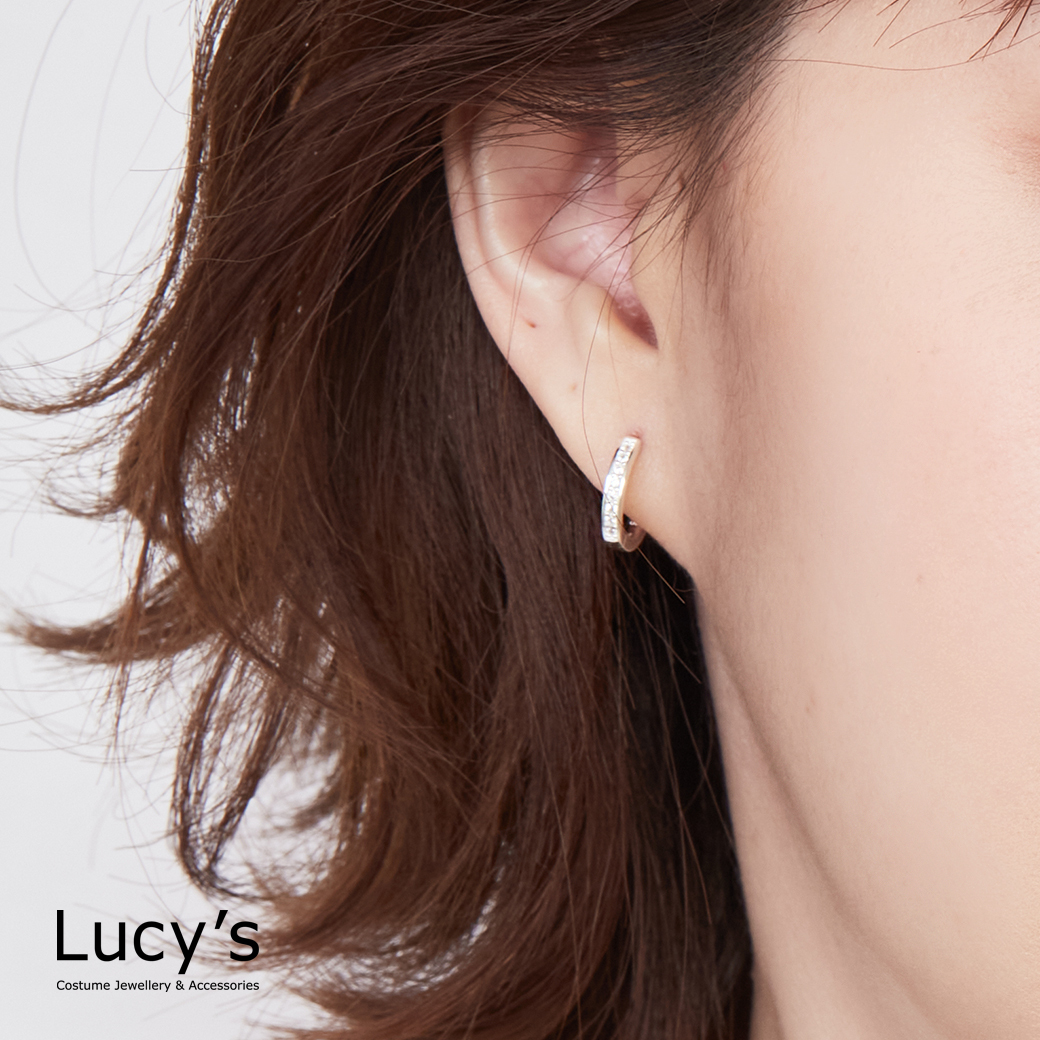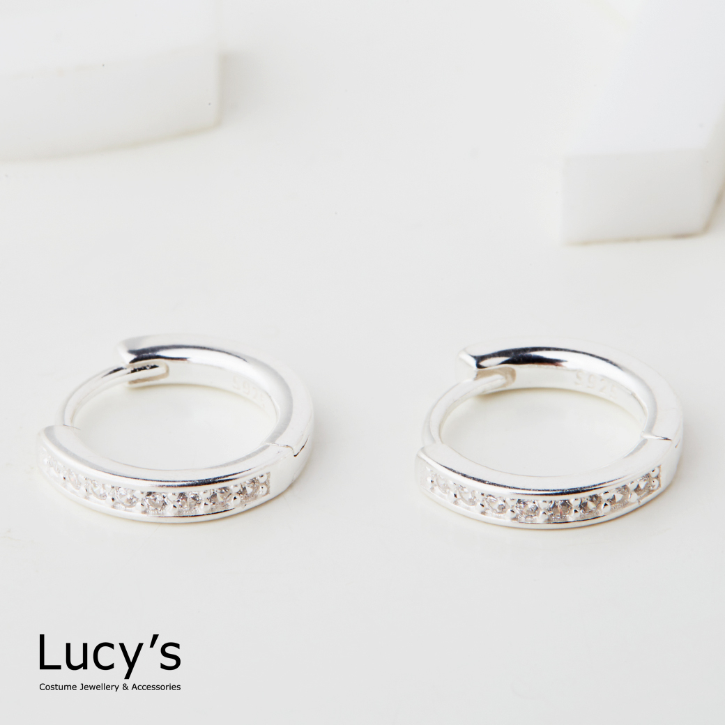 925純銀 鑲鑽圓圈 易扣耳環 (127905)