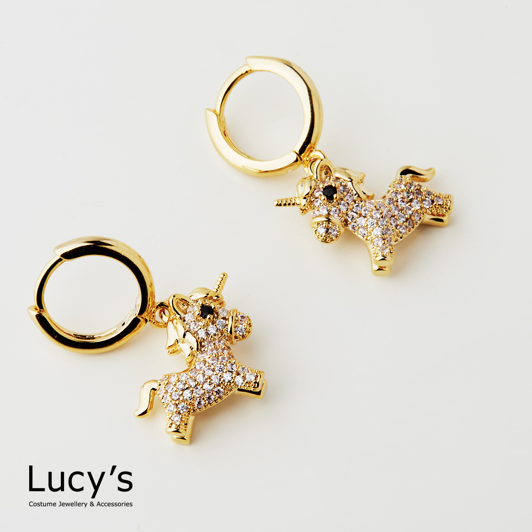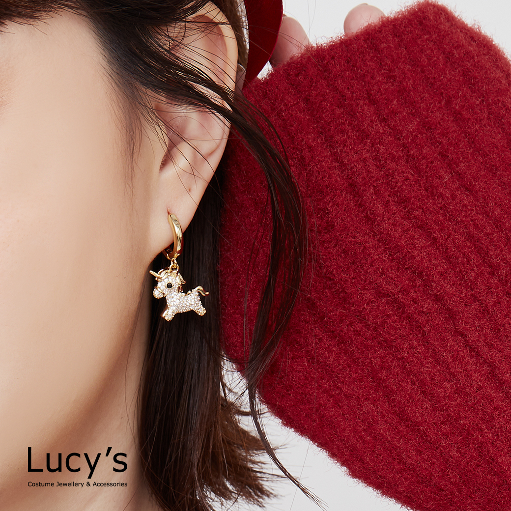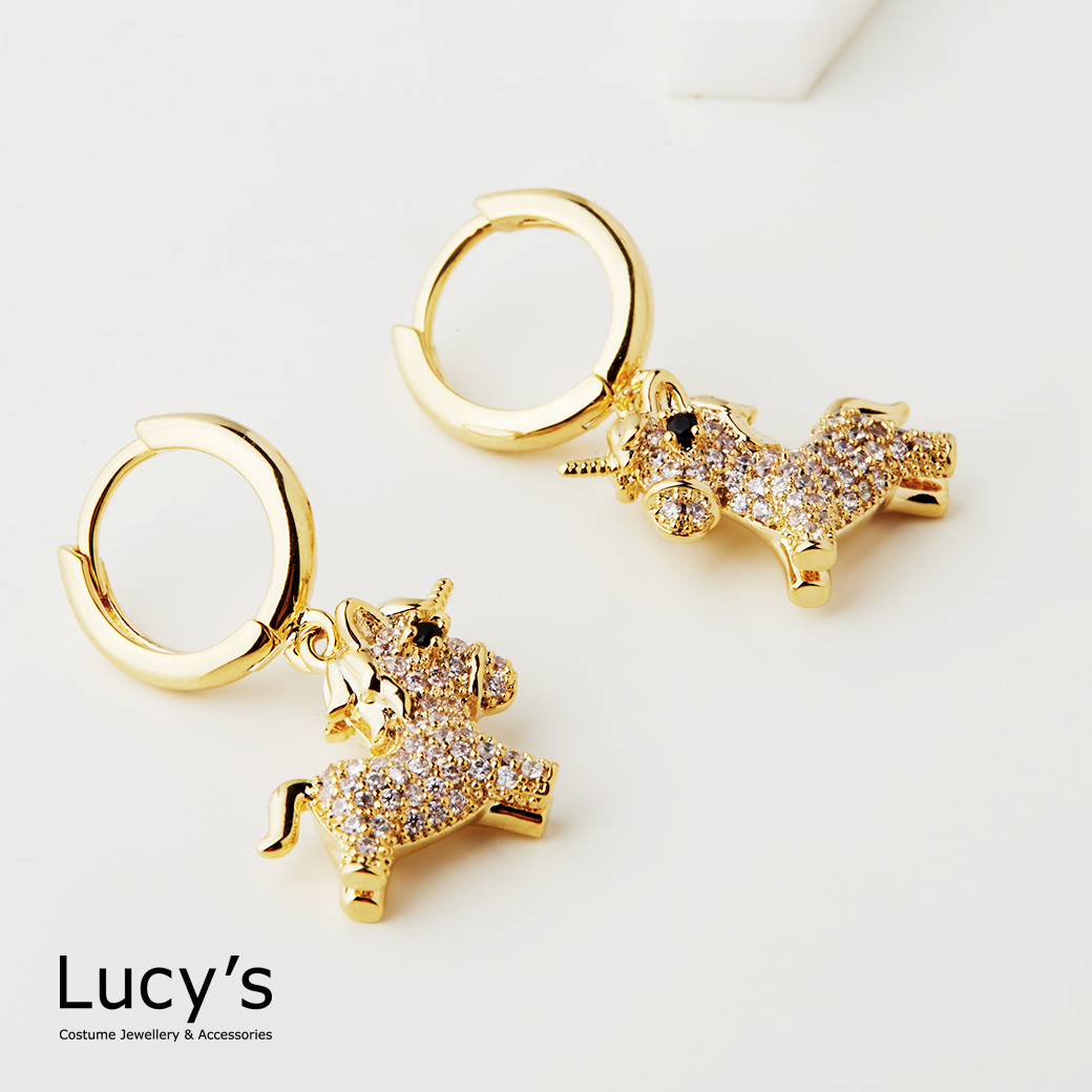 滿鑽獨角獸 易扣耳環 (二色) (129386/129387)