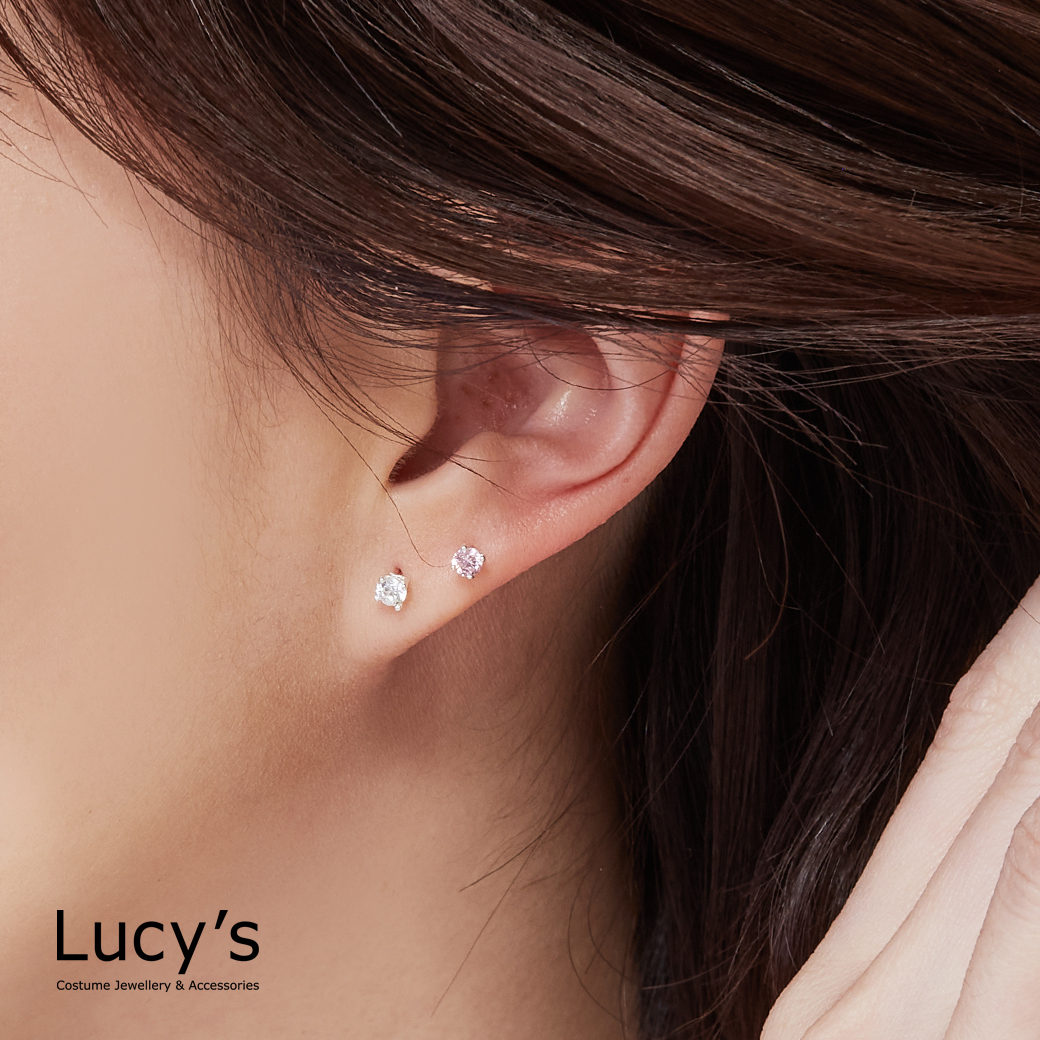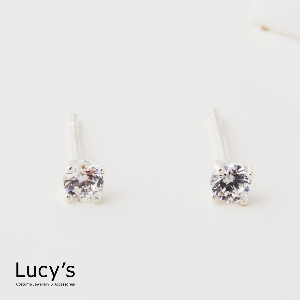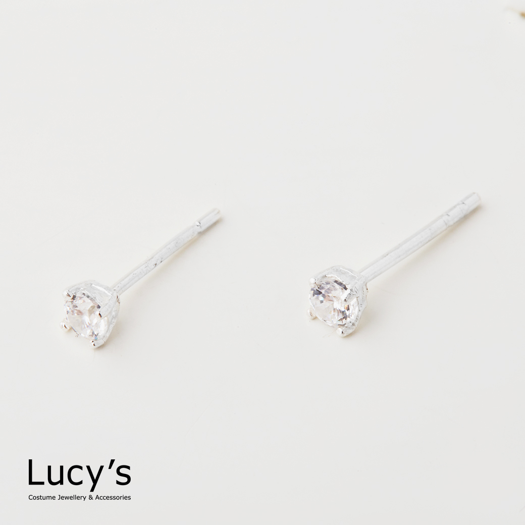 925純銀 四爪圓鑽-0.3CM 耳環 (二色) (23204/65562)