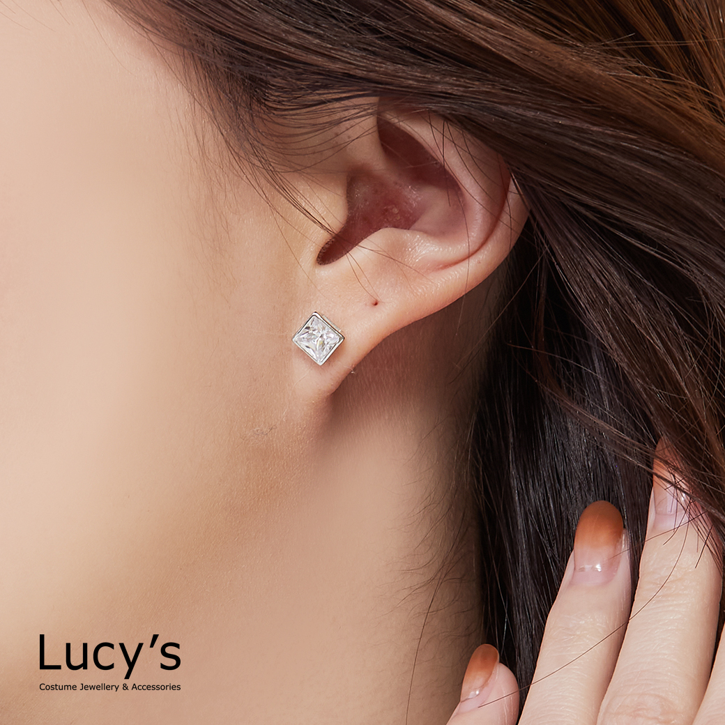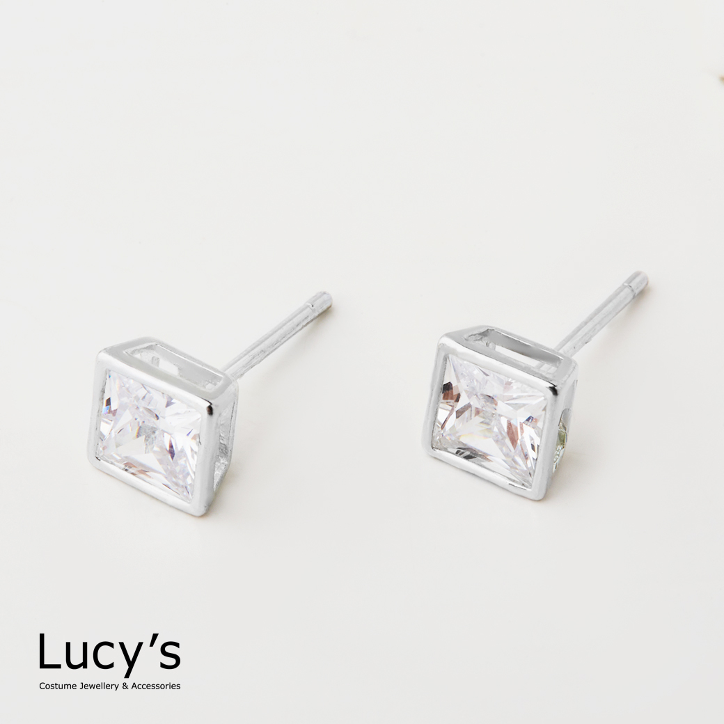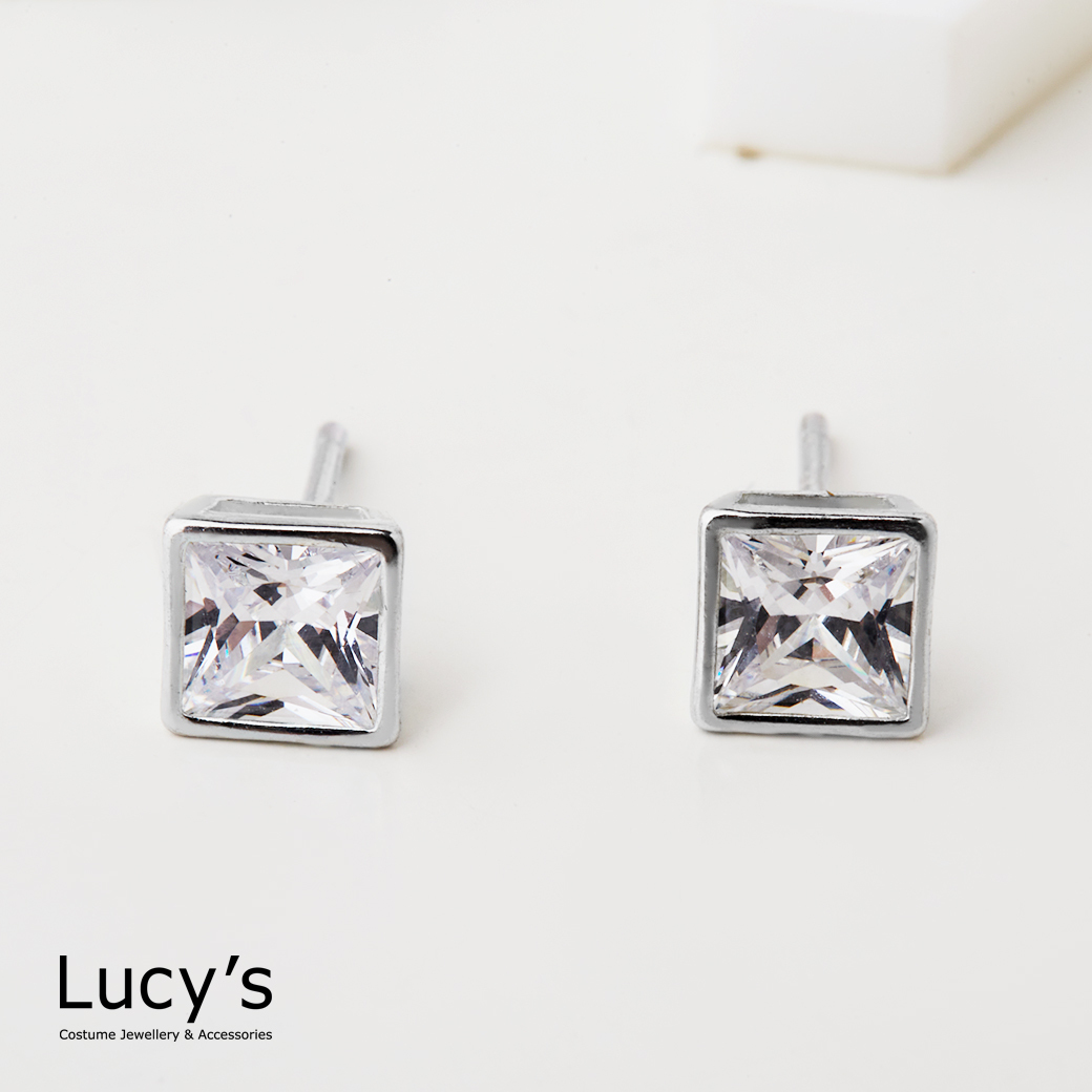 925純銀 方框鑽-大 耳環 (23205)