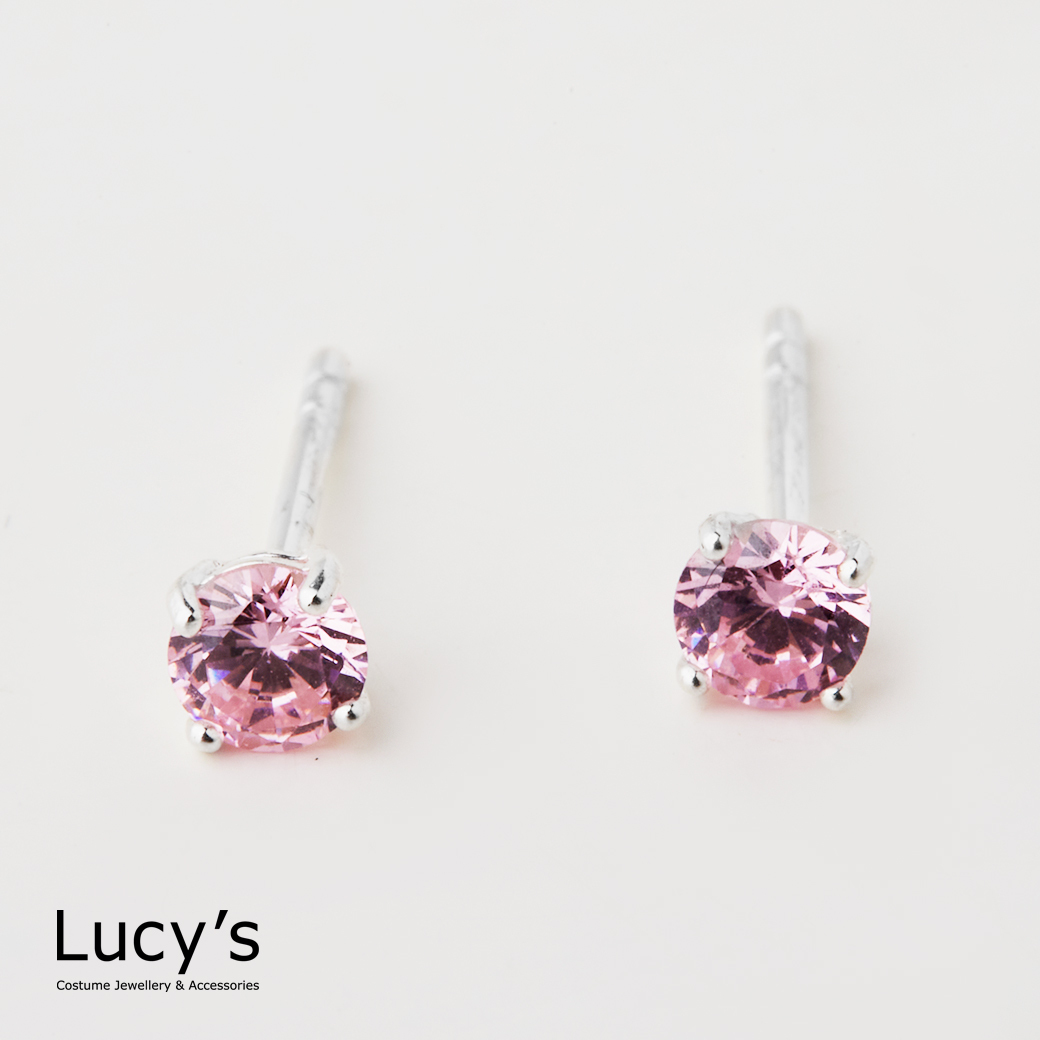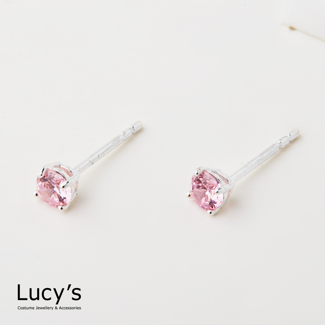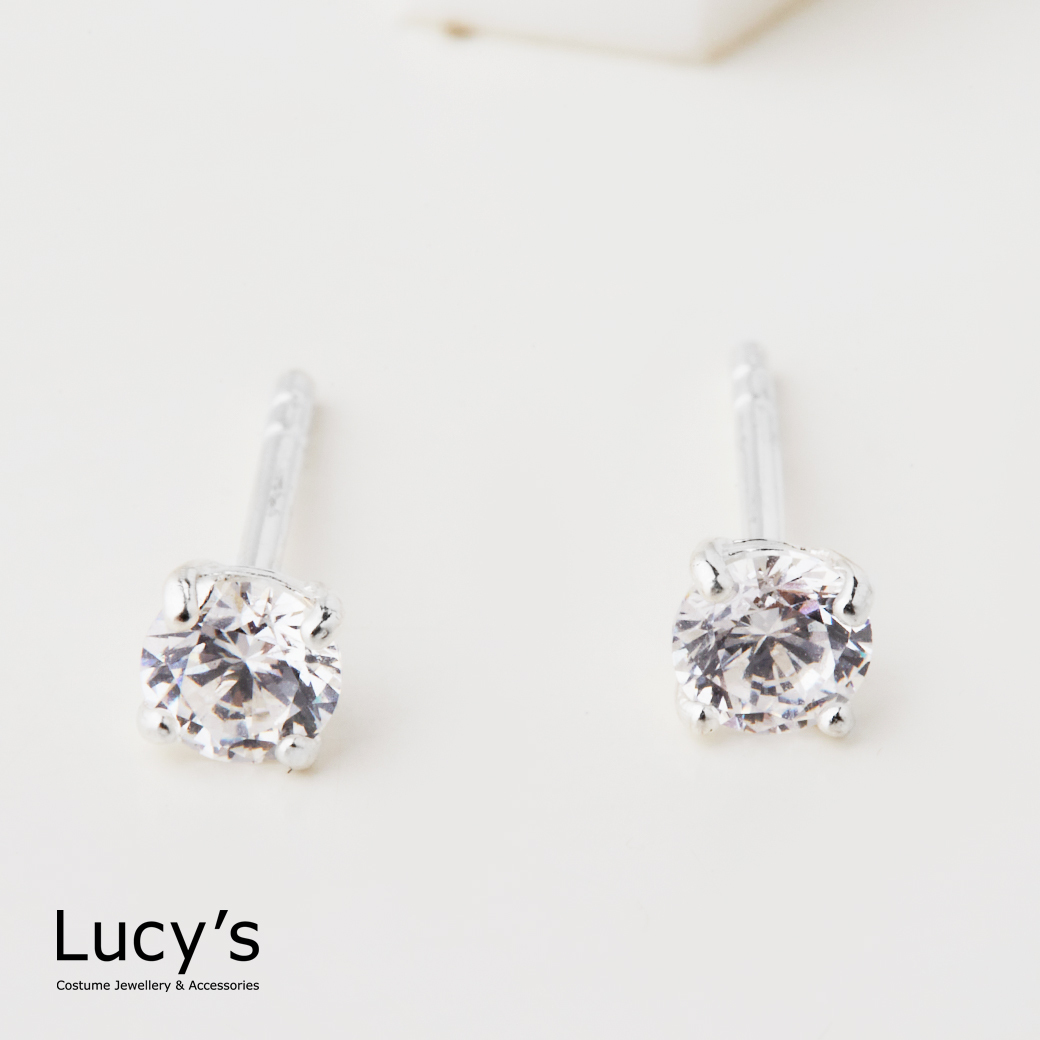 925純銀 四爪圓鑽-0.4CM 耳環 (二色) (23216/65563)