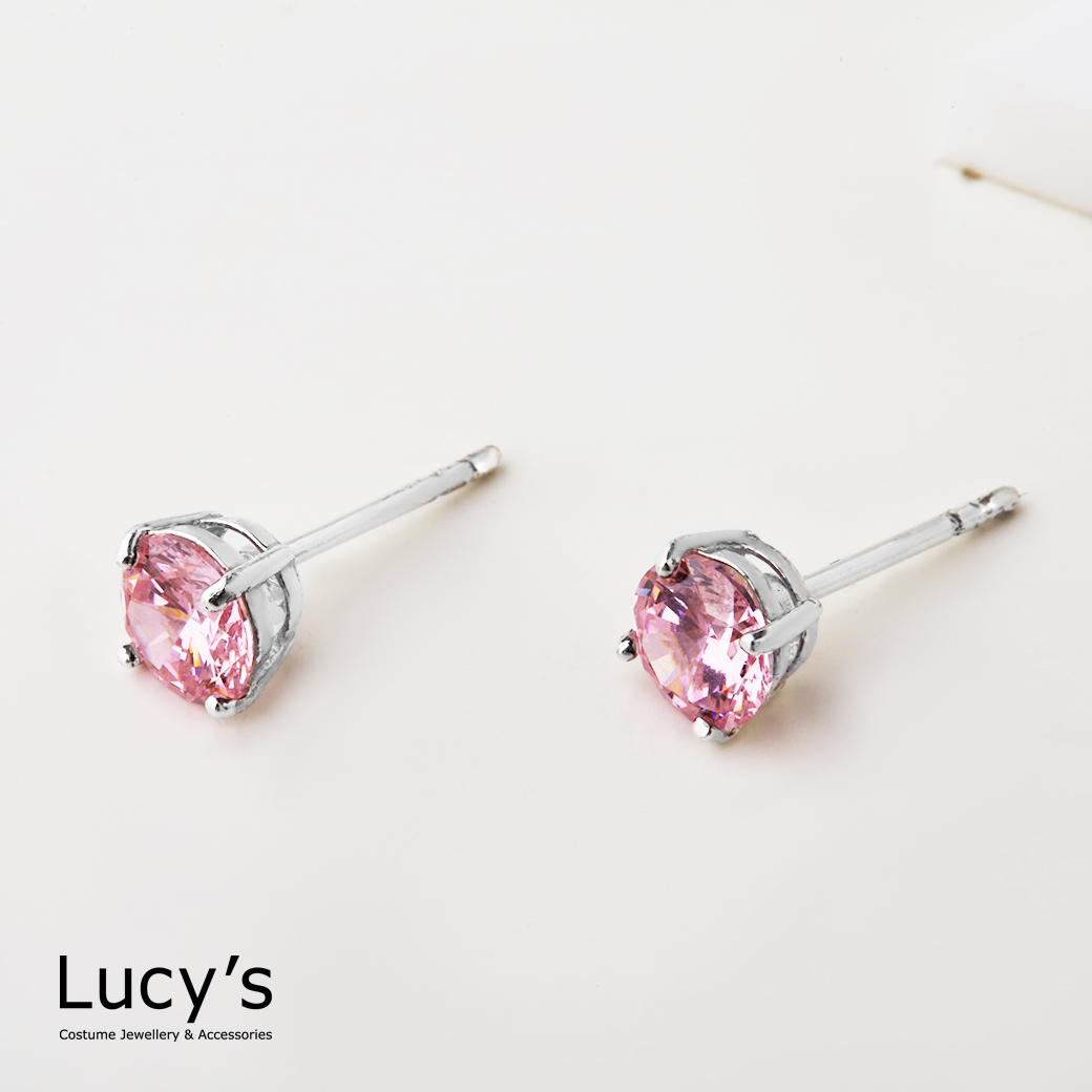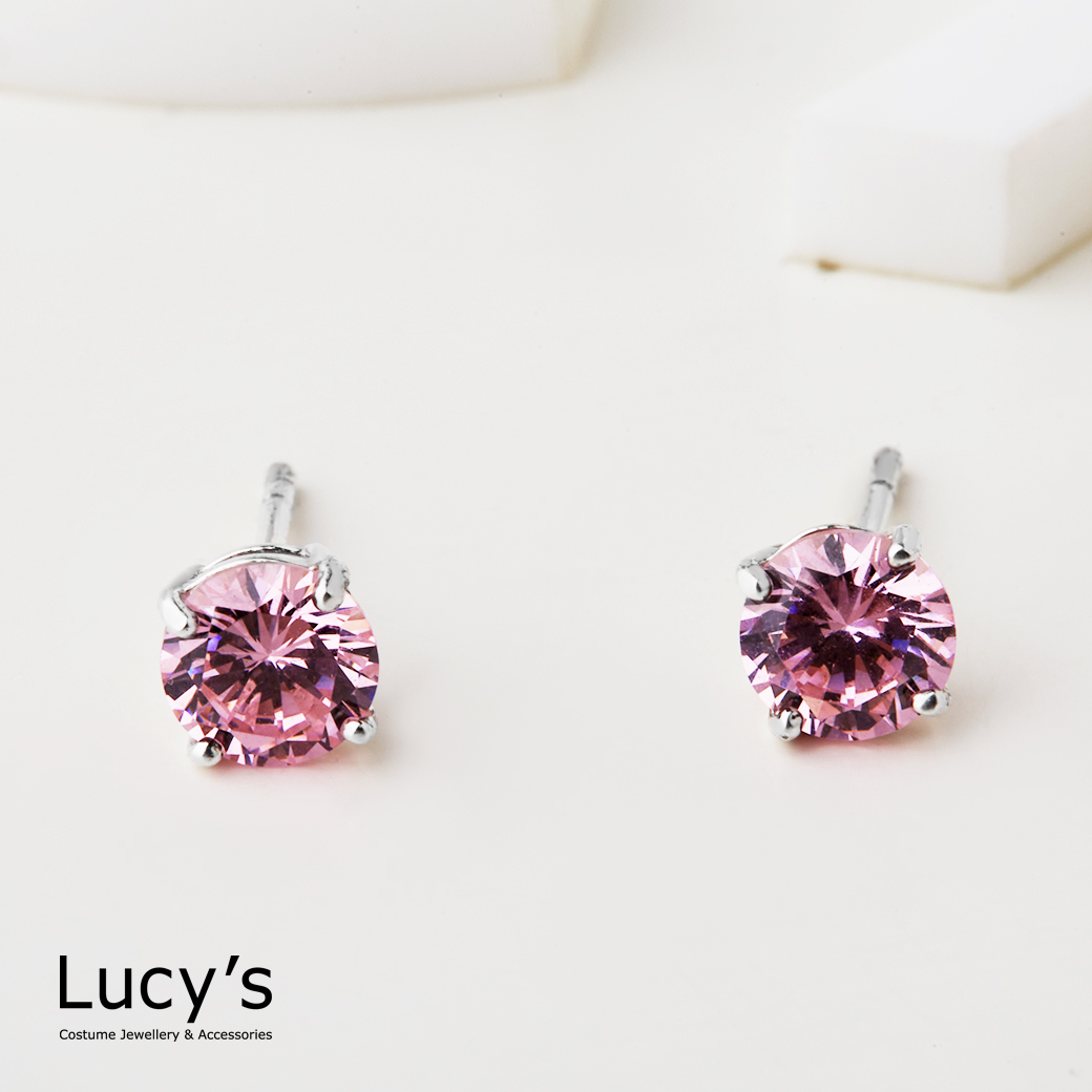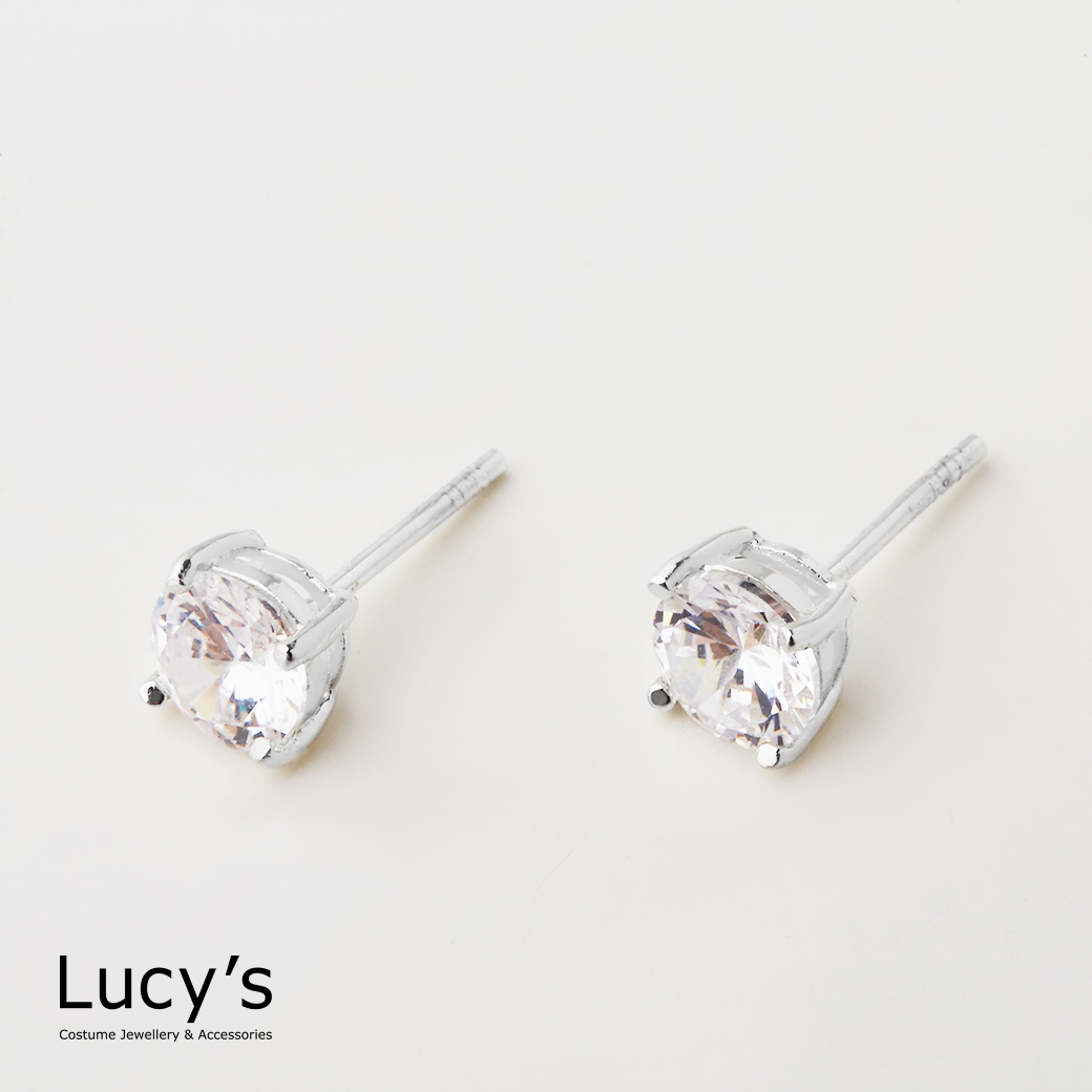 925純銀 四爪圓鑽-0.6CM 耳環 (二色) (30547/65565)