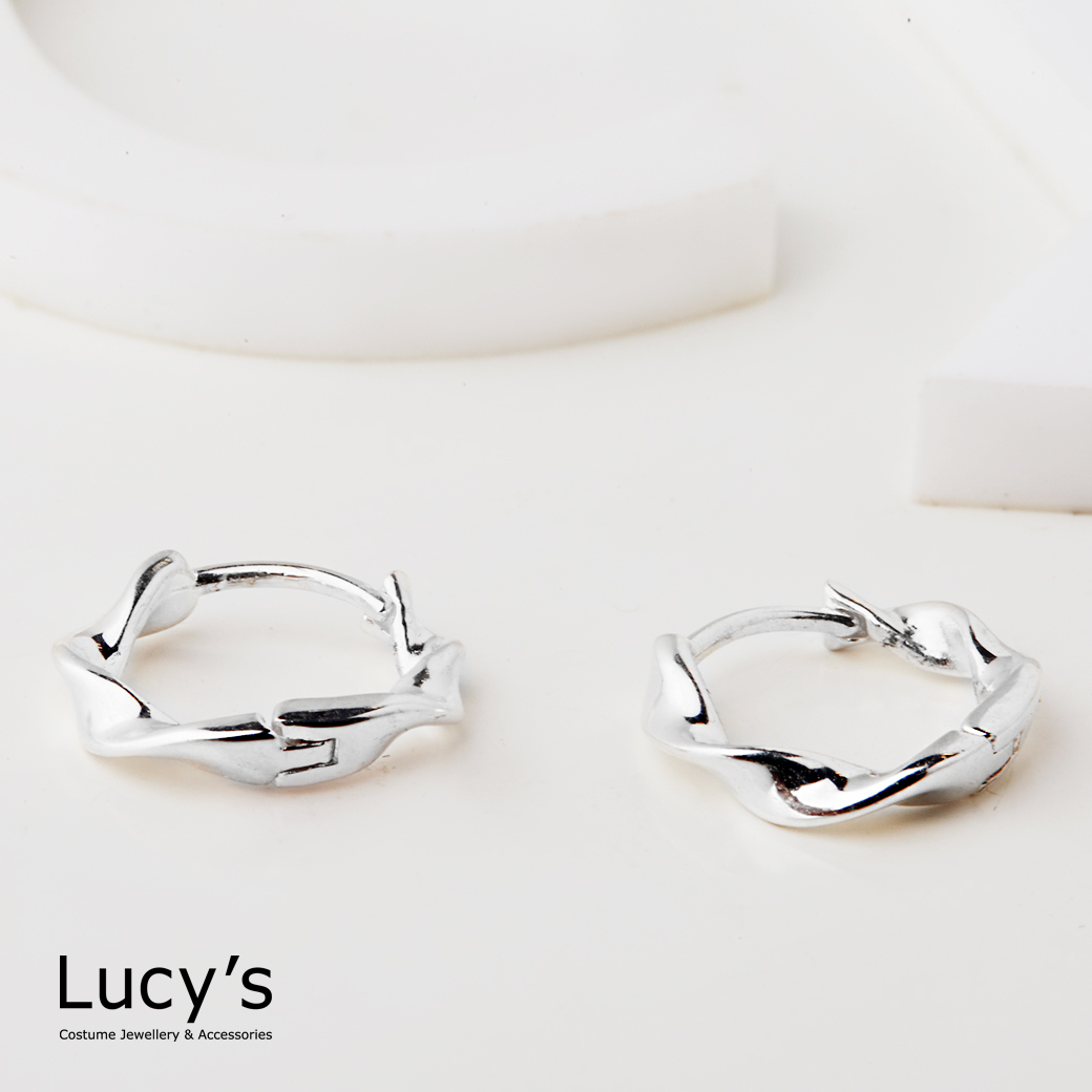 925純銀 扭結麻花 易扣耳環 (77050)