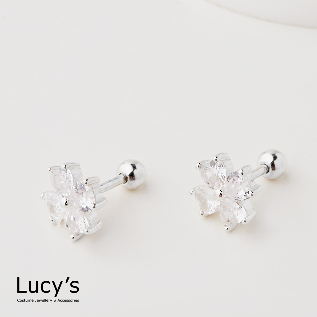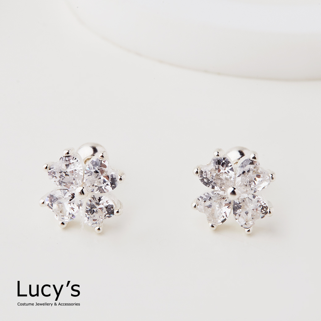 925純銀 冰晶幸運草 轉珠耳環 (107378)