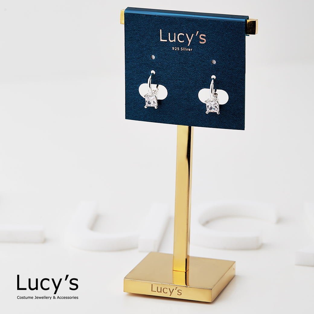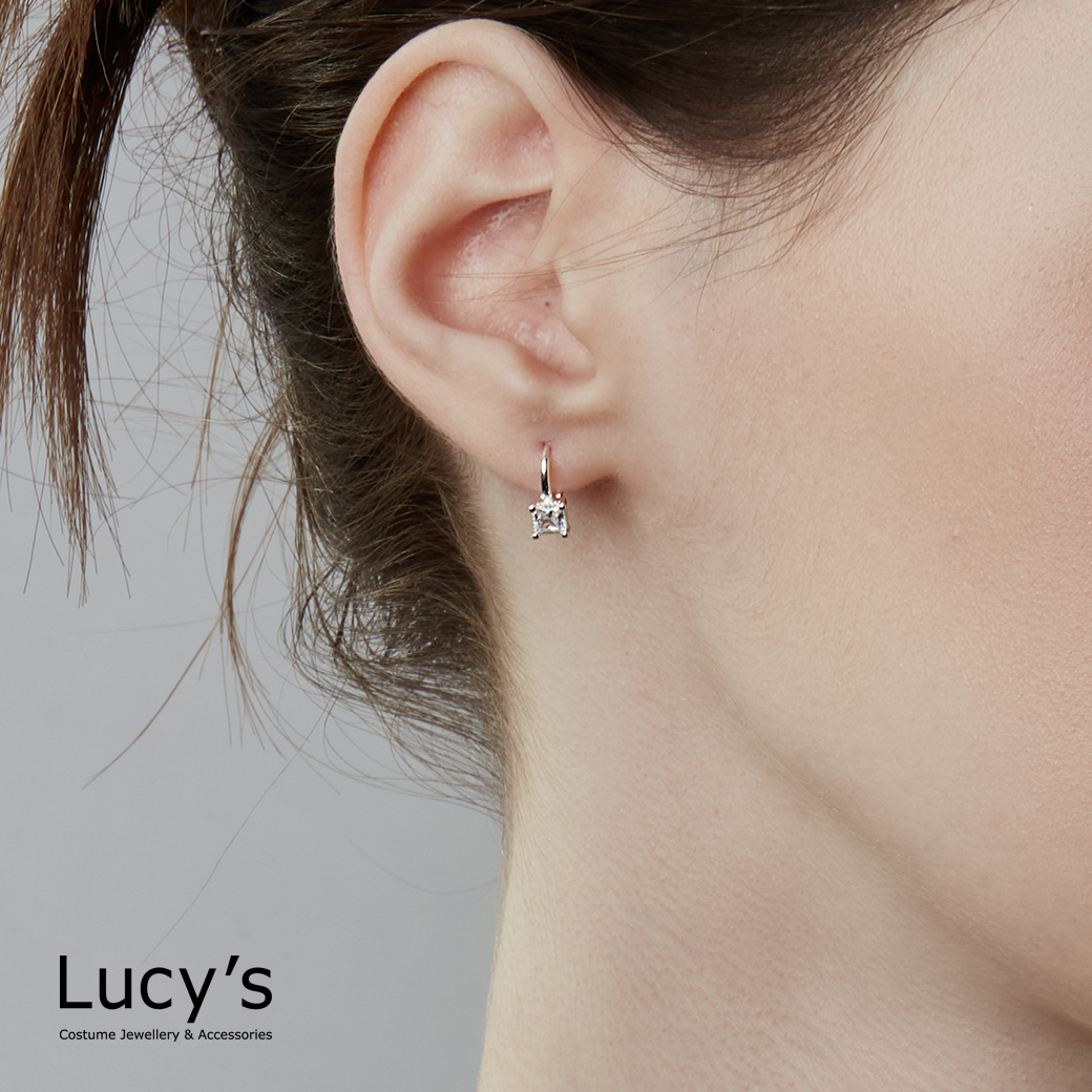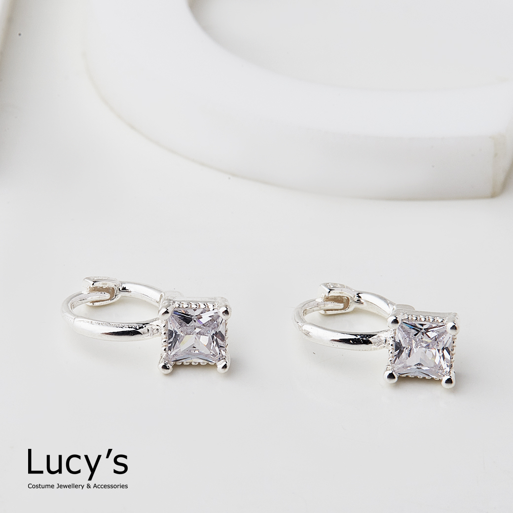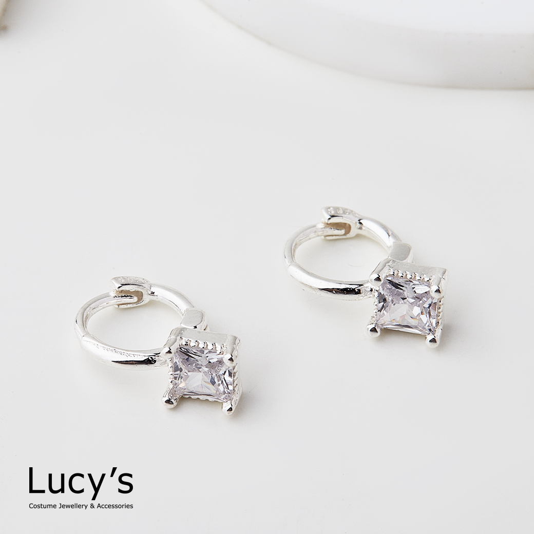 925純銀 方塊鋯石 易扣耳環 (119715)